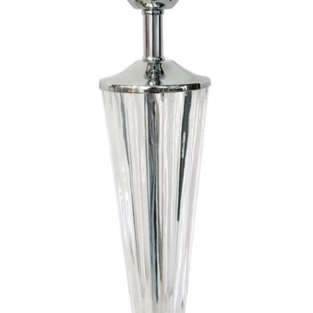 La lámpara de sobremesa Lena es una pieza de iluminación de diseño refinado, ideal para añadir un toque elegante y moderno a cualquier espacio interior. Con una altura de 37 cm y un diámetro de 12 cm, esta luminaria presenta una estructura de metal acabado en oro envejecido que aporta calidez y sofisticación. El cuerpo de cristal transparente con diseño facetado mejora la dispersión de la luz, creando un efecto visual atractivo y equilibrado. Su diseño sin pantalla permite lucir una bombilla decorativa (no incluida), ideal para estilos vintage o contemporáneos. Perfecto para escritorios, mesas auxiliares o rincones de lectura, el sobremesa Lena combina funcionalidad con una estética impecable. Pantalla no incluida. Disponible en acabado cromo.