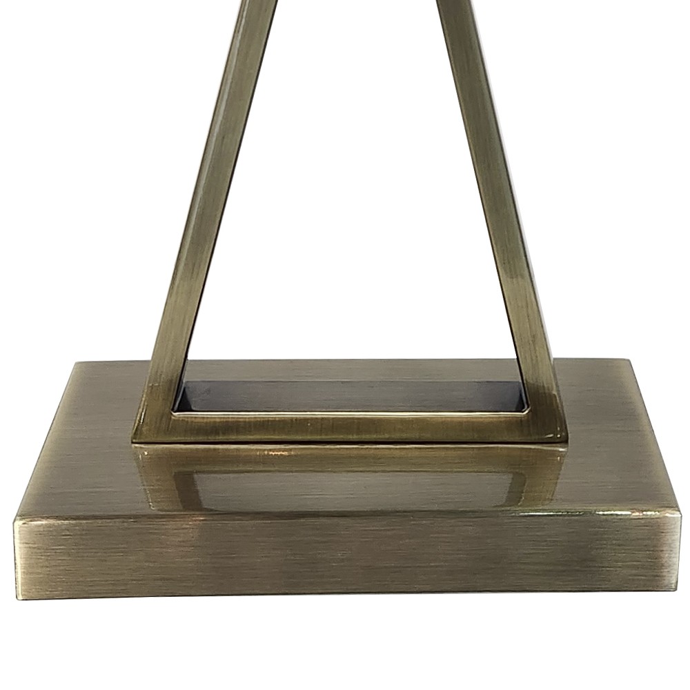 La lampara de sobremesa Singani tiene un diseño moderno con un toque retro, caracterizada por su base en forma de triángulo invertido en un acabado metálico dorado envejecido. Su estética combina lo contemporáneo con lo vintage, lo que la hace adecuada para espacios con una decoración ecléctica, moderna o industrial chic. Se vería bien en salas de estar, oficinas o dormitorios que busquen un elemento funcional decorativo con un toque de elegancia clásica. La sobremesa Singani no lleva la pantalla incluida. Es compatible con bombillas led 1XE27 (no incluida).