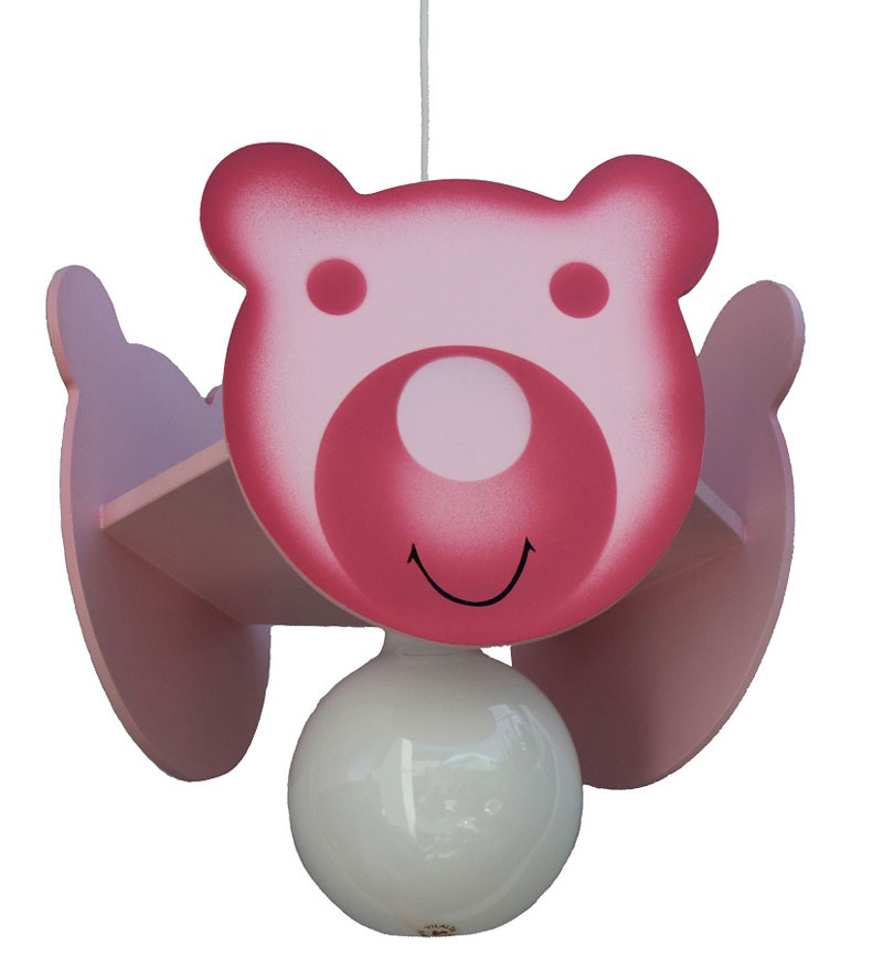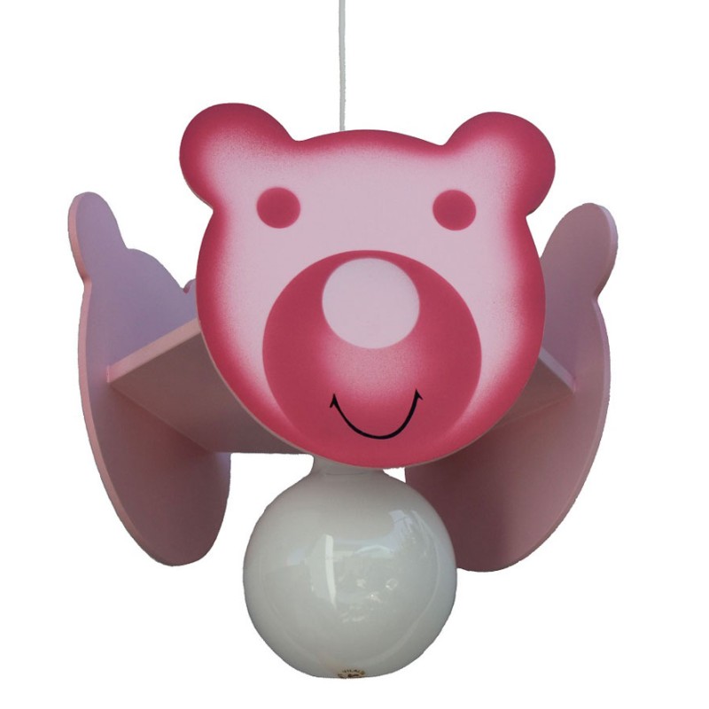 Lámpara infantil de madera con forma de osito en color rosa.Compatible con bombillas incandescentes , bajo consumo o led (bombilla no incluida).Regulable en altura.Le recomendamos utilizar una bombilla con forma de globo de led.