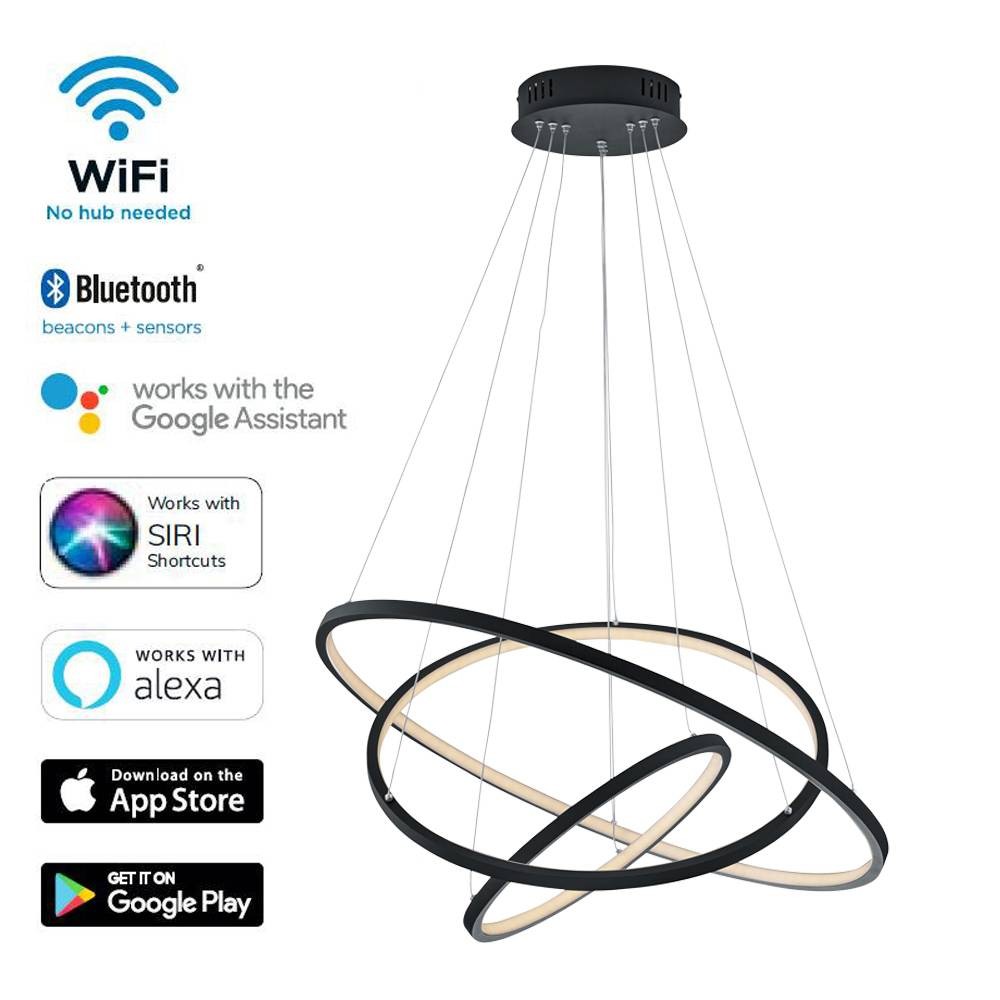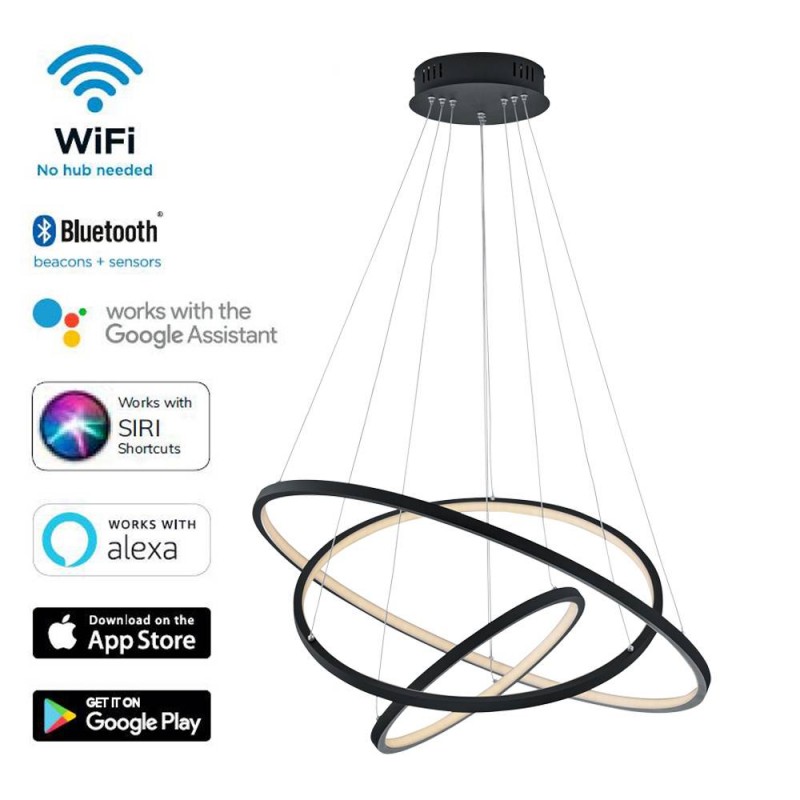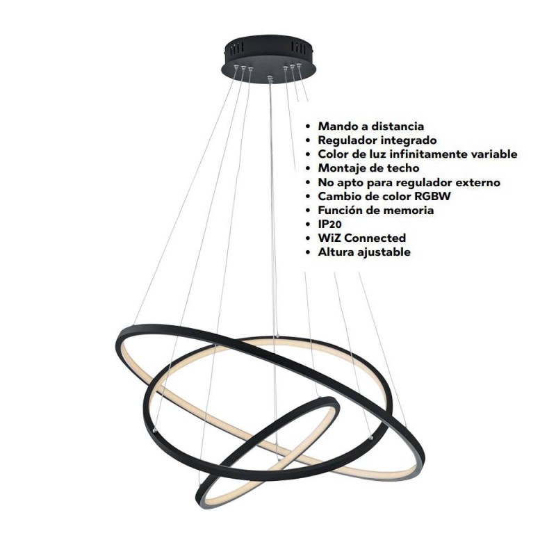 Lámpara de techo colgante Aarón LED 78w RGB+APP acabado antracita estilo moderno 80cm Ø
