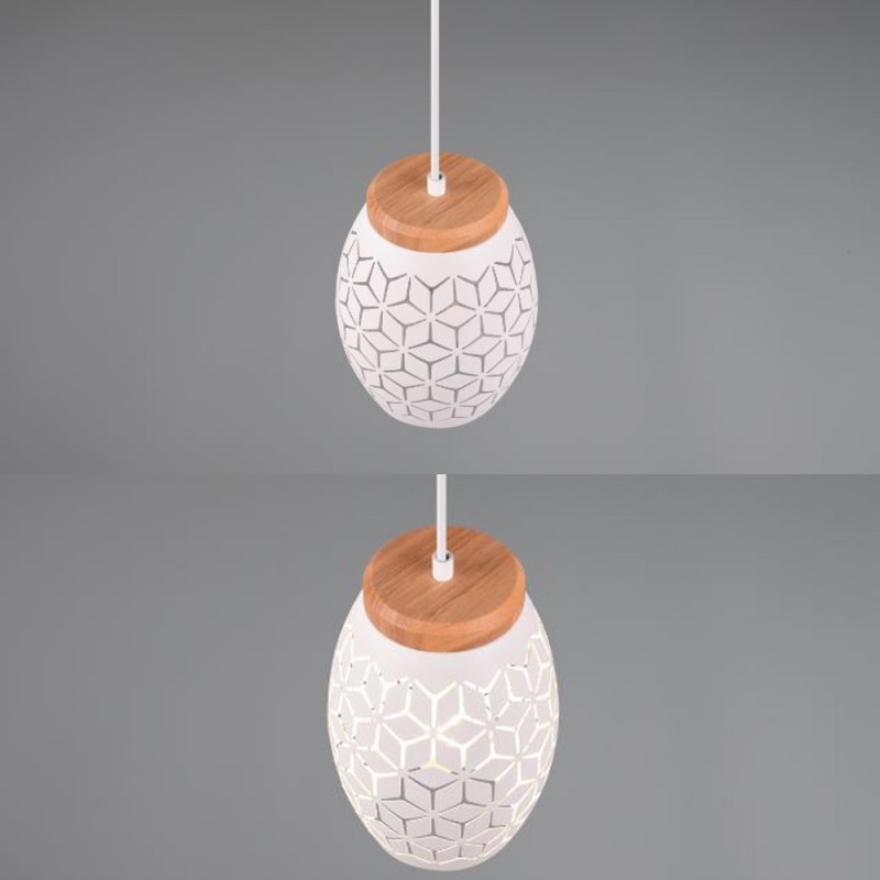 El diseño de la lámpara colgante Bidar, combina metal blanco mate con elementos de madera natural. Su estilo lúdico y creativo, la hacen una adición emocionante y atractiva a cualquier decoración interior. La luz se filtra suavemente a través de intrincados patrones, creando un juego de luces envolvente y único que embellece el ambiente. Esta lámpara, con sus detalles en madera natural, no solo ilumina, sino que también aporta una sensación de calidez y bienestar, convirtiéndola en una verdadera pieza central de cualquier habitación. Bidar es compatible con bombillas led (no incluida). Su altura es regulable a la hora de la instalación. Ideal para salas de estar, comedores o incluso dormitorios, esta lámpara se destaca por su capacidad de crear una atmósfera acogedora y estilosa. Disponible en otros formatos y otros acabados.