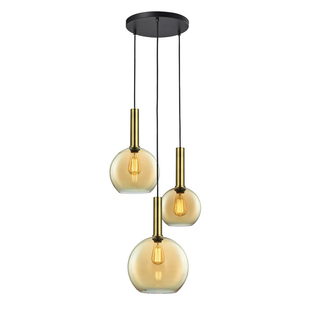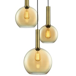 Lámpara colgante Boro 3L mixta ámbar con estructura metálica y tulipas de cristal ámbar, perfecta para iluminar salones, comedores o cocinas con una luz cálida y acogedora. Combina estilo vintage con eficiencia LED y diseño elegante.