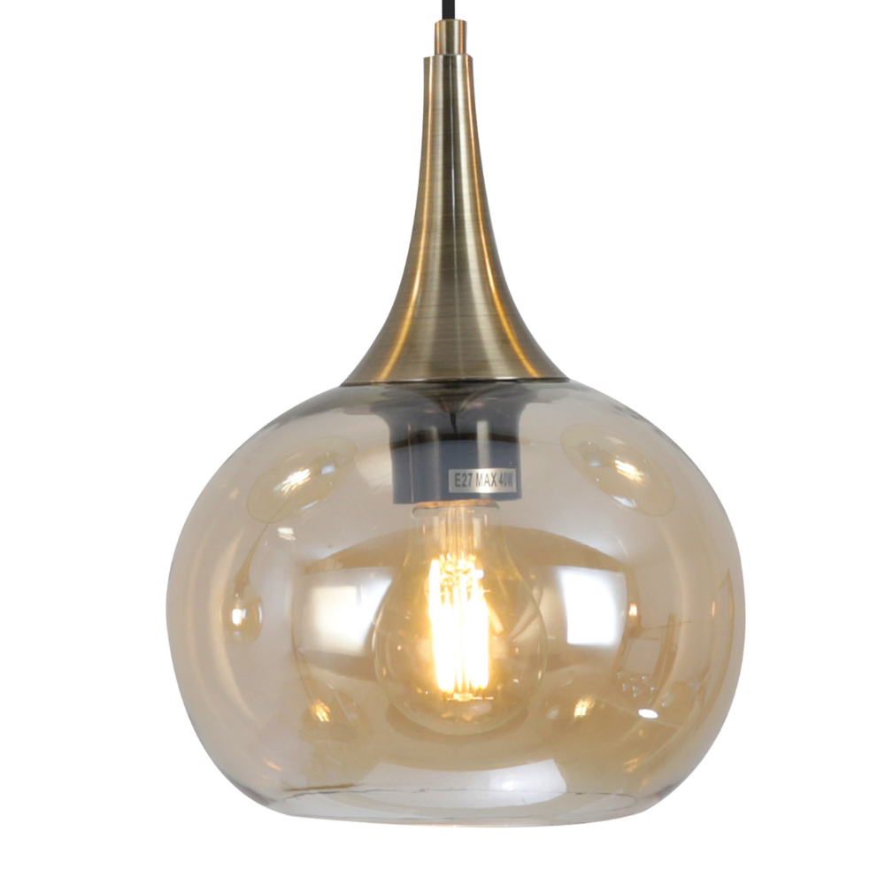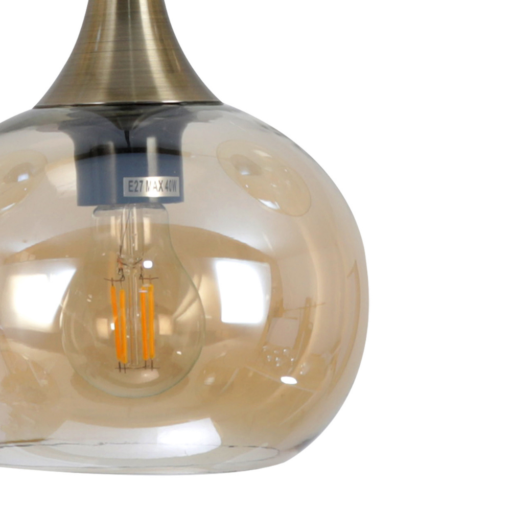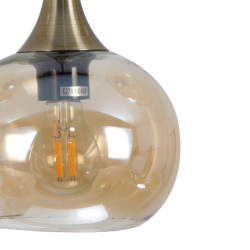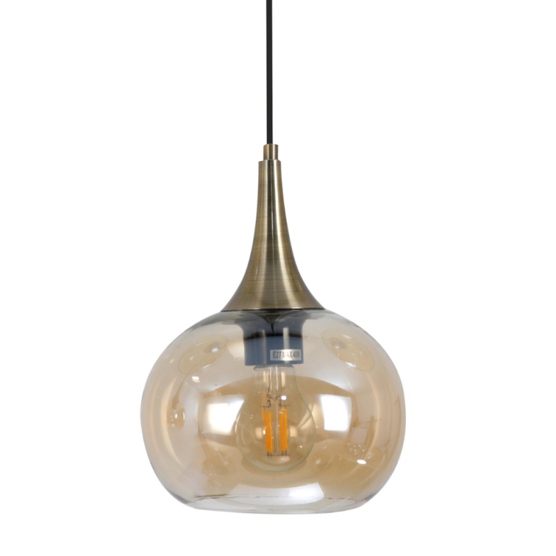 Lámpara de techo colgante Celanova 1xE27 en acabado metal cuero con tulipa de cristal ámbar efecto espejo. Diseño vintage elegante ideal para salón, dormitorio o comedor.