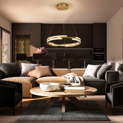Lámpara de techo colgante Ciclos Oro LED 52w 3000k integrado acabado oro estilo moderno 60cm Ø