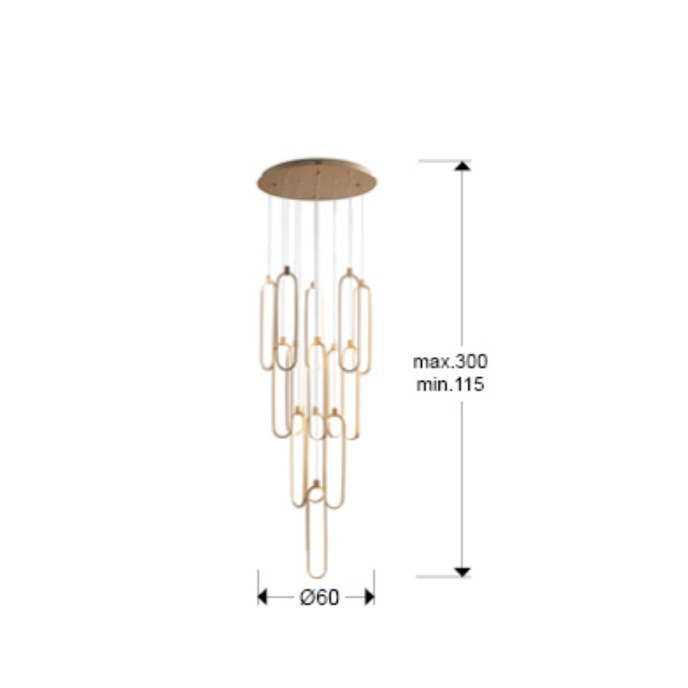 Lámpara de techo colgante Colette 14L LED 182w 3000k Dimmable acabado oro rosa estilo moderno 60cm Ø