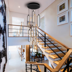 La lámpara de grandes dimensiones Colette XXL de Schuller es una pieza espectacular para proyectos donde la iluminación y el diseño deben ser protagonistas: salones con techos altos, comedores amplios, escaleras o zonas de doble altura. Está realizada en aluminio cepillado con acabado oro rosa combinado con negro mate, e incorpora difusores de silicona opal que suavizan la luz para crear una iluminación más uniforme y confortable. Integra 14 luces LED con una potencia total de 182W, un flujo de 16.380 lm y 3000K (luz cálida), proporcionando una iluminación potente con una atmósfera acogedora. Además, es regulable en intensidad e incluye control remoto por radiofrecuencia y compatibilidad con la app TUYA para regular la luz desde smartphone o tablet. En instalación, permite regular la altura para adaptarse a diferentes techos y composiciones: altura instalada 115 cm hasta 300 cm máx. Sus dimensiones son Ø60 × 49 cm, con pantallas/colgantes de 10 × 49 × 2 cm y un florón lineal de 55,5 cm (espacio para instalación). Incluye tacos de vuelco con balancín para mejorar la fijación al techo, algo especialmente recomendable por tratarse de un artículo pesado. Disponible en diferentes formatos y acabados.