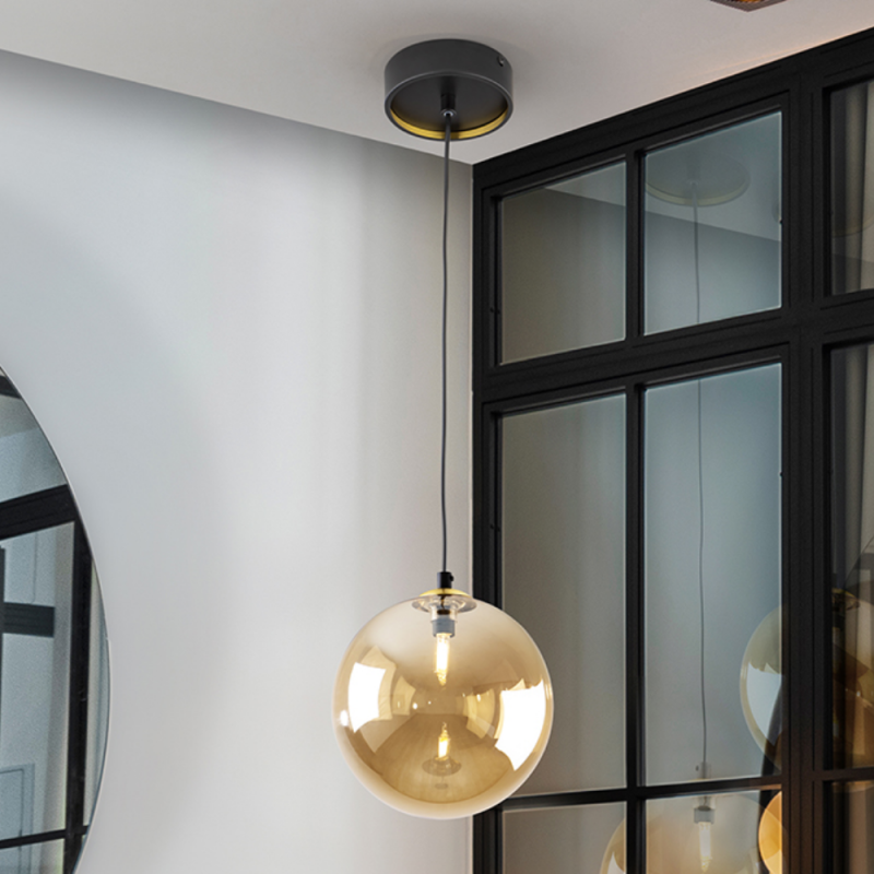 La lámpara de techo colgante Dark 1L de Schuller es una luminaria de diseño moderno y sofisticado que aporta carácter y estilo a cualquier estancia interior. Su estructura metálica en negro mate, realzada con detalles en latón satinado, crea un contraste visual elegante y contemporáneo. El cuerpo se complementa con una tulipa esférica de cristal ámbar de 20 cm, que difunde la luz de forma cálida y envolvente, proporcionando una iluminación acogedora y visualmente atractiva que transforma cualquier espacio en un ambiente elegante y confortable. Esta lámpara incorpora una bombilla LED G9 de 4 W incluida, con un flujo luminoso de aproximadamente 400 lm y temperatura de color cálida 3000 K, ideal para crear luz de ambiente en salones, comedores, dormitorios o pasillos sin deslumbramientos. Su altura es ajustable desde 35 cm hasta 220 cm a la hora de la instalación, lo que permite adaptar la lámpara a distintos techos y necesidades de iluminación. Con unas dimensiones compactas y un diseño claramente contemporáneo, la colección Dark de Schuller destaca por su equilibrio entre estética y funcionalidad. Este modelo de una luz es perfecto tanto para instalaciones individuales como para composiciones en grupo, ofreciendo versatilidad y personalidad en espacios modernos y atemporales. Disponible en otros formatos.