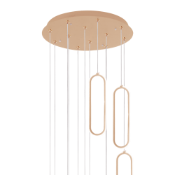 La lámpara de techo colgante Durbuy LED 120W es una pieza de iluminación decorativa diseñada para aportar elegancia y personalidad a espacios de gran altura. Su composición de múltiples aros luminosos suspendidos a diferentes niveles crea un efecto visual moderno y sofisticado, ideal para salones amplios, escaleras, entradas o espacios contract. Equipada con tecnología LED integrada de alta eficiencia, ofrece una potencia de 120W que garantiza una iluminación intensa, uniforme y de bajo consumo energético. Gracias a su sistema 3CCT, permite seleccionar entre distintas temperaturas de color (cálida, neutra o fría), adaptándose perfectamente a cualquier ambiente o momento del día. Incluye mando a distancia para un control cómodo y total de la iluminación, permitiendo ajustar la intensidad, cambiar el tono de luz y activar funciones como modo noche o temporizador.Compatible con control inteligente mediante app, puedes ampliar sus funciones descargando Lamp Smart Pro a través del código QR incluido, permitiendo gestionar la iluminación desde tu móvil. Su acabado en metal color champán aporta un toque exclusivo y elegante, convirtiéndola en un elemento decorativo protagonista. Con un diámetro de 50 cm y una instalación en suspensión, esta lámpara es ideal para proyectos de interiorismo que buscan combinar diseño, funcionalidad y tecnología en una sola pieza. La altura de sus aros es regulable a la hora de la instalación. Disponible en una medida inferior y en acabado negro.