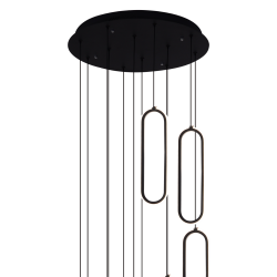 La lámpara de techo colgante Durbuy LED 120W en acabado metal negro es una solución de iluminación decorativa de alto impacto visual, diseñada para espacios amplios que buscan un estilo moderno y sofisticado. Su estructura de múltiples aros luminosos suspendidos a diferentes alturas genera un efecto dinámico y elegante, convirtiéndola en el punto focal de cualquier estancia. Gracias a su potencia de 120W y tecnología LED integrada, proporciona una iluminación potente, homogénea y eficiente, ideal para salones, escaleras, recibidores o espacios de doble altura. Incorpora sistema 3CCT, que permite seleccionar entre luz cálida, neutra o fría según las necesidades del ambiente. Incluye mando a distancia para un control total de la iluminación, permitiendo regular la intensidad, cambiar la temperatura de color y utilizar funciones adicionales como modo noche o temporizador. Su acabado en color negro refuerza su estética contemporánea, siendo perfecto para interiores modernos, minimalistas o de estilo industrial. Con un diámetro de 50 cm y cables ajustables, permite configurar diferentes alturas en cada aro, creando composiciones personalizadas y adaptadas al espacio. Disponible en un tamaño inferior y en acabado champán.