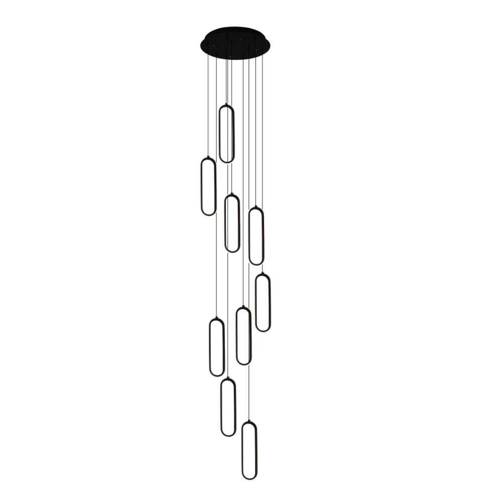 La lámpara de techo colgante Durbuy LED 80W en acabado metal negro destaca por su diseño contemporáneo y elegante, ideal para aportar carácter y sofisticación a cualquier espacio interior. Su composición de aros luminosos suspendidos a distintas alturas crea un efecto visual dinámico y moderno, perfecto para salones, escaleras, recibidores o espacios con techos altos. Equipada con tecnología LED integrada de 80W, ofrece una iluminación eficiente, uniforme y de bajo consumo. Gracias a su sistema 3CCT, permite seleccionar entre diferentes temperaturas de color (cálida, neutra o fría), adaptándose fácilmente a distintos ambientes y necesidades de iluminación. Incluye mando a distancia para un control total y cómodo, permitiendo regular la intensidad lumínica, cambiar el tono de luz y activar funciones adicionales como modo noche o temporizador.Compatible con control inteligente mediante app, puedes ampliar sus funciones descargando Lamp Smart Pro a través del código QR incluido, permitiendo gestionar la iluminación desde tu móvil. Su acabado en color negro aporta un estilo moderno y minimalista, ideal para decoraciones actuales, industriales o de alto contraste. Con un diámetro de 40 cm y cables de suspensión regulables, esta lámpara permite personalizar la altura de cada elemento, creando composiciones únicas y adaptadas a cada espacio. Sus aros son regulables en altura a la hora de la instalación. Disponible en un tamaño de medida superior y en acabado champán.