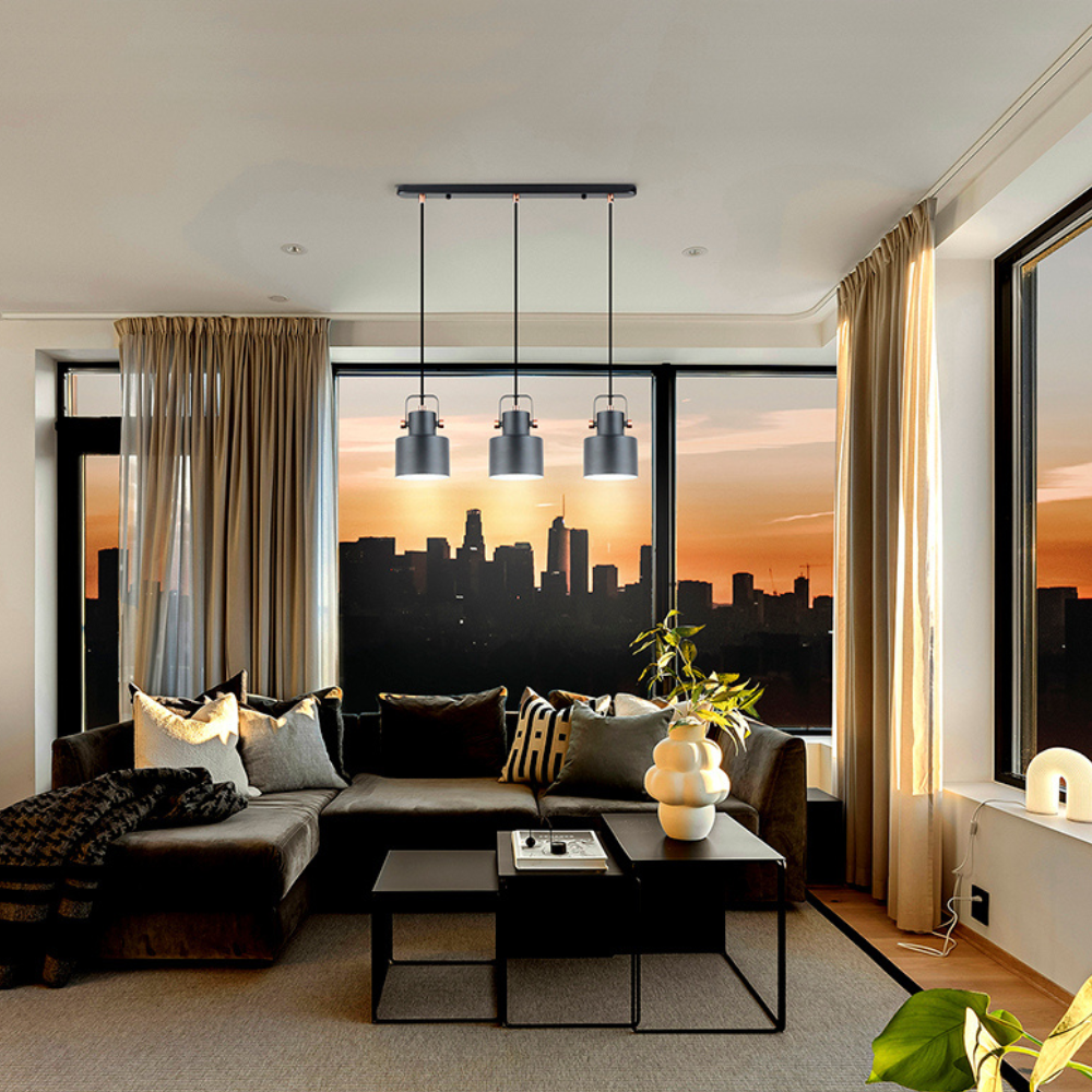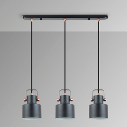 La lámpara de techo colgante Erika 3L de Schuller es una luminaria de diseño moderno y versátil que combina funcionalidad con una estética contemporánea de gran impacto visual. Fabricada en metal con acabado negro mate y detalles en cobre satinado, esta lámpara ofrece un estilo elegante que encaja a la perfección en interiores residenciales o contract con decoración moderna, minimalista o industrial chic. Compatible con bombillas casquillo E27 (no incluidas), esta pieza proporciona una iluminación potente y personalizable según las necesidades de cada espacio, ya sea un salón, comedor, cocina o zona de estudio. Su diseño en línea con tres tulipas permite distribuir la luz de forma uniforme y equilibrada, ideal para iluminar superficies alargadas como mesas de comedor, barras de cocina o mesas de trabajo. La lámpara Erika 3L también destaca por su altura regulable (mín. aprox. 35 cm – máx. aprox. 140 cm), lo que facilita su adaptación a techos de diferentes alturas y configuraciones, aportando tanto iluminación funcional como un elemento decorativo de presencia. Cada tulipa tiene un diámetro de aproximadamente 12 cm, logrando una presencia visual equilibrada y elegante sin saturar el ambiente. Su diseño sobrio pero distintivo hace del Erika una opción ideal tanto para proyectos de interiorismo como para iluminación general y decorativa en hogares modernos.
