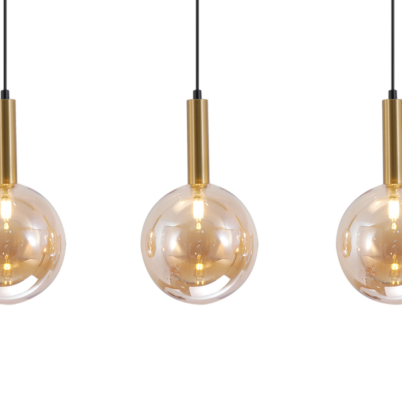 Esta elegante lámpara colgante de cuatro luces modelo Eris Lineal, combina la sofisticación del diseño moderno con un toque retro industrial. Fabricada con materiales de alta calidad como aluminio en acabado negro y dorado, y tulipas de cristal ámbar soplado, esta luminaria aporta calidez y estilo a cualquier espacio. Su diseño suspendido crea una iluminación ambiental ideal para comedores, barras, cocinas o salas de estar. Las bombillas tipo G9 (no incluidas) proporcionan una luz suave y acogedora, mientras que las tulipas transparentes color ámbar suavizan el resplandor, generando una atmósfera envolvente y sofisticada. El contraste entre los acabados metálicos y el cristal brinda un efecto visual moderno que se adapta tanto a espacios contemporáneos como a interiores de inspiración vintage. La altura de cada una de ellas es regulable a la hora de la instalación. Medida de tulipa 18cm Ø. Su estructura ligera y resistente permite una instalación sencilla, y la longitud de los cables puede ajustarse para adaptarse a diferentes alturas de techo. Esta lámpara no es solo una fuente de luz, sino una verdadera pieza decorativa que eleva el diseño de cualquier ambiente. Disponible en otros formatos.