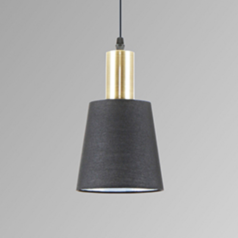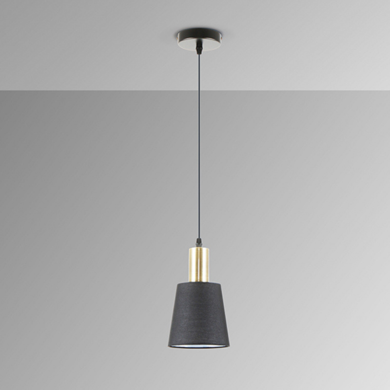 Lámpara colgante Schuller Gisela en metal negro mate y latón satinado con pantalla textil, casquillo E27 (bombilla no incluida) y altura regulable. Iluminación decorativa moderna ideal para salones, comedores, dormitorios y espacios interiores contemporáneos