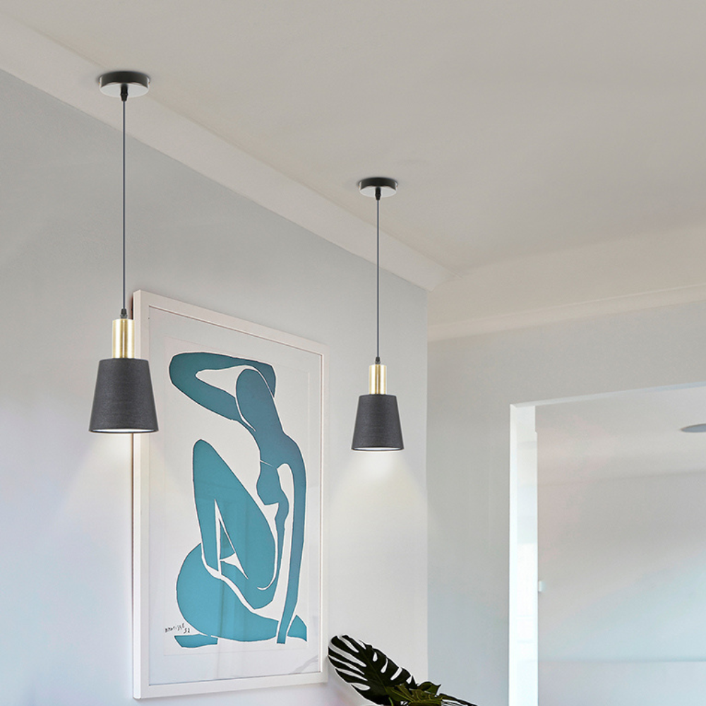 La lámpara de techo colgante Schuller Gisela tiene un estilo moderno y elegante. Esta diseñada para aportar iluminación decorativa y funcional en cualquier ambiente interior. Esta lámpara combina una estructura de metal con acabado negro mate con detalles en latón satinado que aportan un contraste sofisticado, ideal para resaltar la estética de salones, comedores, dormitorios o zonas de estar contemporáneas. Su portalámparas es E27 (bombilla no incluida), Gisela permite incorporar la bombilla LED que mejor se adapte a tus necesidades de luz, ya sea cálida y ambiental o más intensa para zonas de actividad. Su diseño con pantalla textil negra suaviza y difunde la luz creando una ambiente acogedor, sin deslumbramientos molestos, perfecto para espacios de vida diarios. La lámpara Gisela cuenta con altura regulable (desde aproximadamente 40 cm hasta 150 cm) a la hora de la instalación, ofreciendo versatilidad de instalación y adaptándose a diferentes alturas de techo y estilos de decoración. Su formato compacto con diámetro de 14 cm y una construcción ligera pero resistente la convierten en una opción práctica y decorativa para completar proyectos de interiorismo que busquen integrar piezas iluminativas con diseño actual. Schuller Gisela 1 L es una luminaria perfectamente equilibrada entre estética, funcionalidad y facilidad de instalación, aportando un toque contemporáneo y acogedor en cualquier estancia donde se instale. Disponible en diferentes formatos.