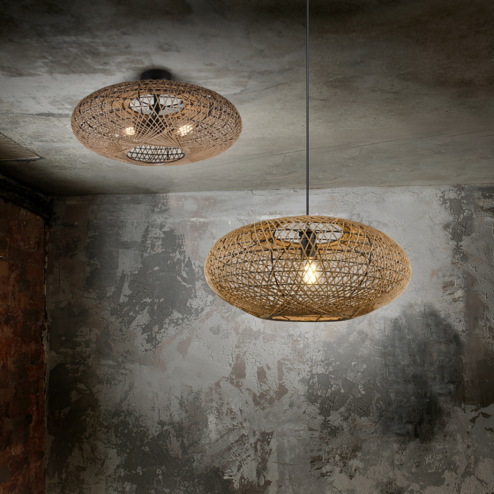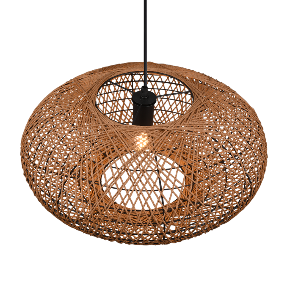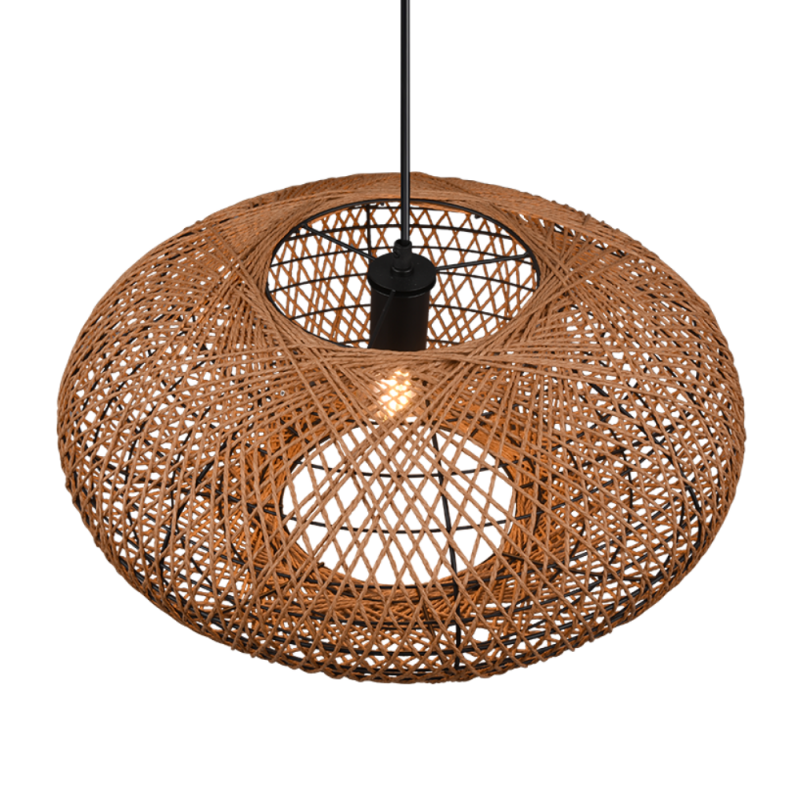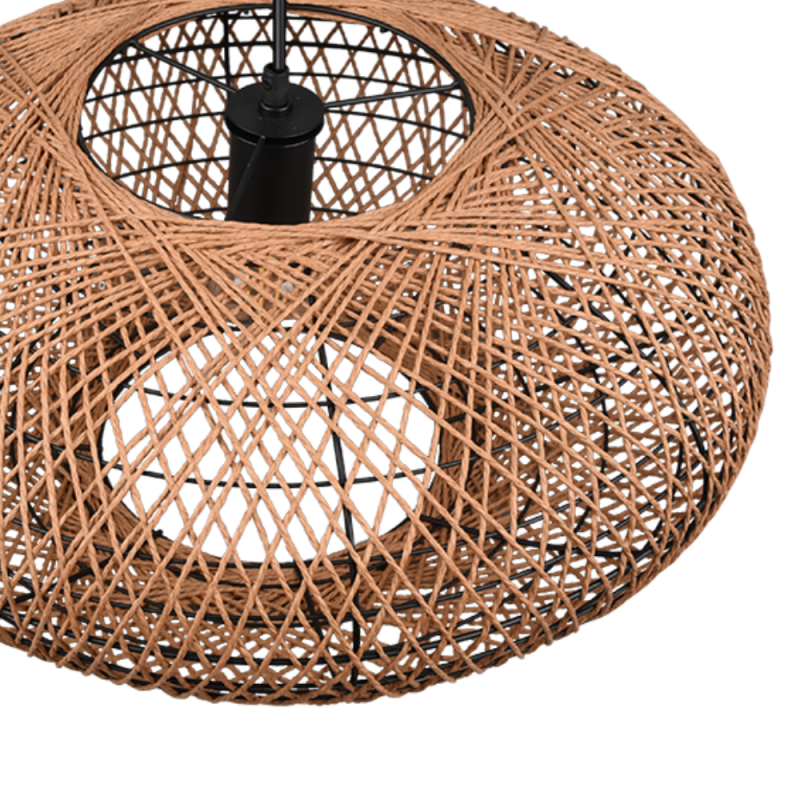 Lámpara de techo colgante HEDDA con pantalla de sisal natural y estructura negro mate. Funciona con 1 bombilla E27 ( no incluida). Ideal para salón, comedor o dormitorio con estilo natural y moderno.