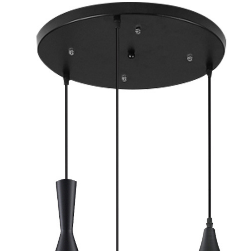 La lámpara colgante Iris V negra combina diseño moderno con una estética industrial sofisticada. Este modelo está compuesto por tres pantallas metálicas colgantes, cada una con una forma distinta, lo que genera un efecto visual dinámico y elegante. Su acabado exterior en negro mate contrasta armoniosamente con el interior dorado, proporcionando una luz cálida y envolvente que crea ambientes acogedores y con estilo. Fabricada en metal de alta calidad, garantiza durabilidad y resistencia. Las pantallas tienen alturas ajustables, lo que permite adaptar la iluminación al espacio, ya sea sobre una mesa de comedor, una isla de cocina o una barra. Es compatible con focos E27 (no incluidos), lo que facilita la elección del tipo de luz según tus preferencias: cálida, neutra o blanca. Ideal para espacios contemporáneos, nórdicos o industriales, la lámpara Iris V negra se convierte en un punto focal decorativo que no pasa desapercibido. Disponible en acabado blanco.