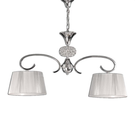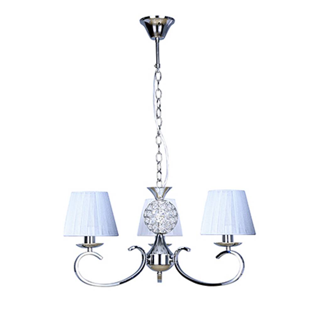 Lámpara de techo colgante de 3 luces, con estructura de metal y pantallas de tela blanca. Porta 3 bases de bombilla E14 compatibles con led y bajo consumo (no incluidas). Es ideal para estancias de estilo moderno como salones y dormitorios a los que se le quiera dar un toque contemporáneo sin perder la elegancia característica del estilo clásico.