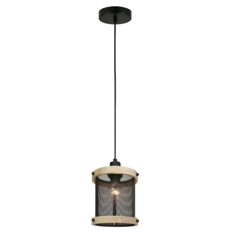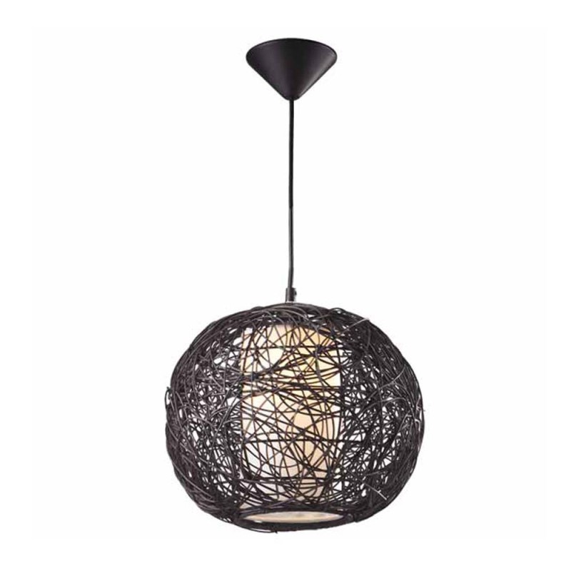 Lámpara de techo colgante Kaos 1xE27 acabado rattán tono café y tejido blanco estilo rústico 30cm Ø