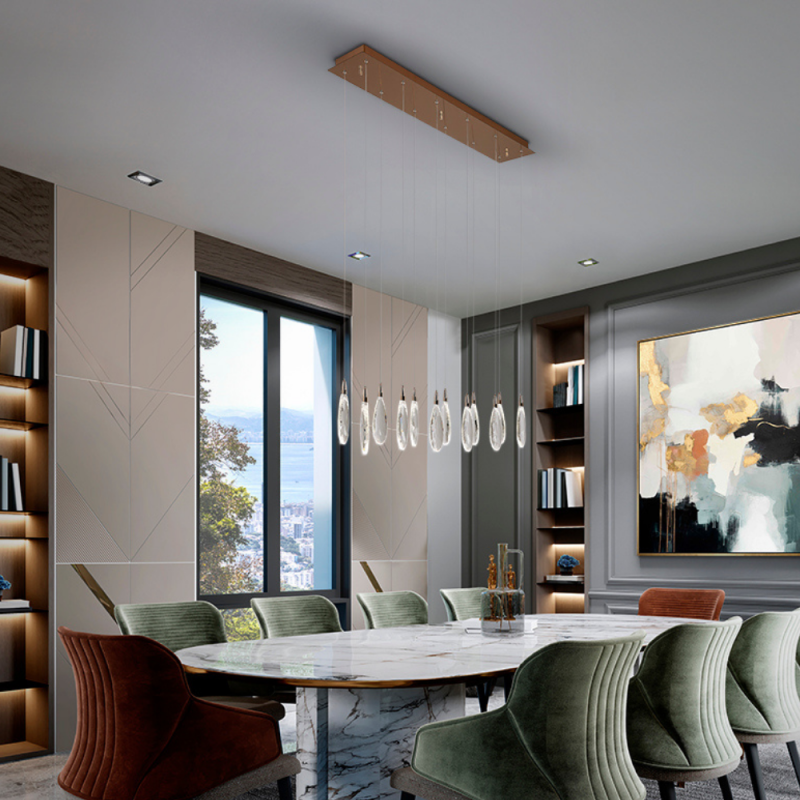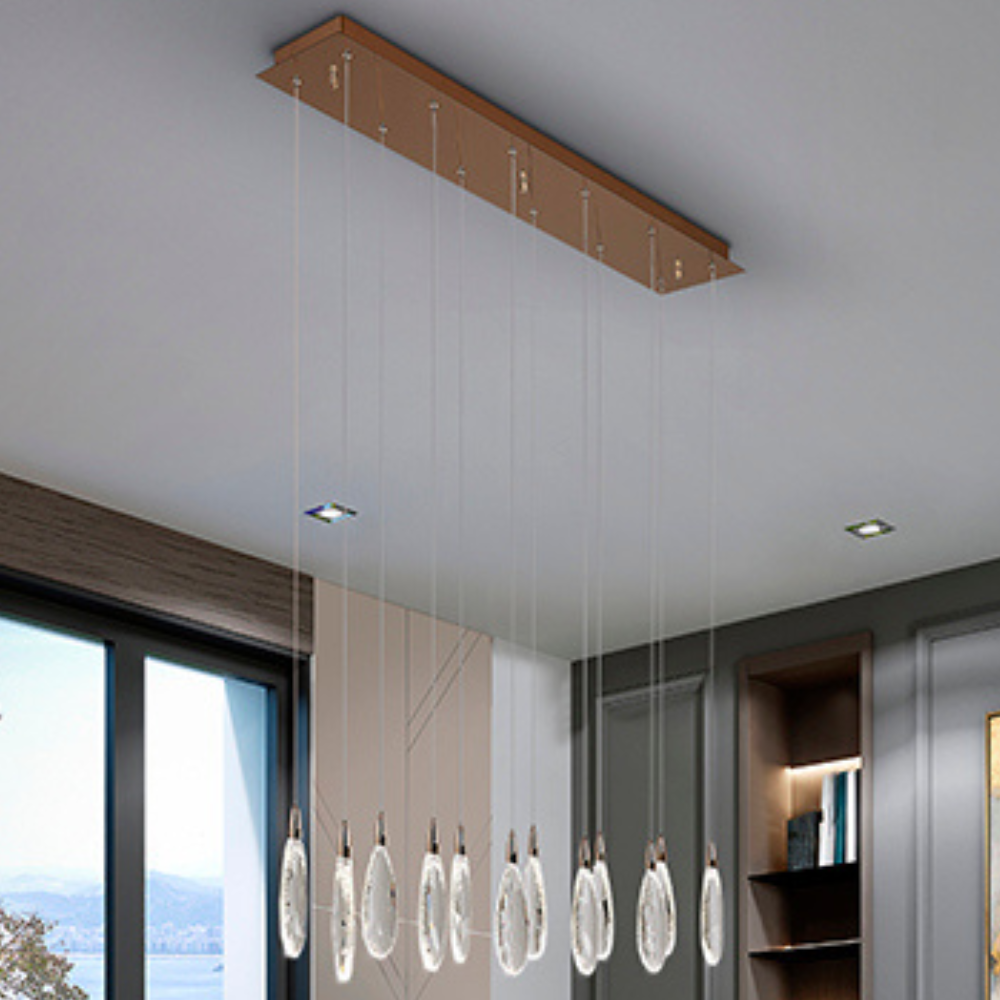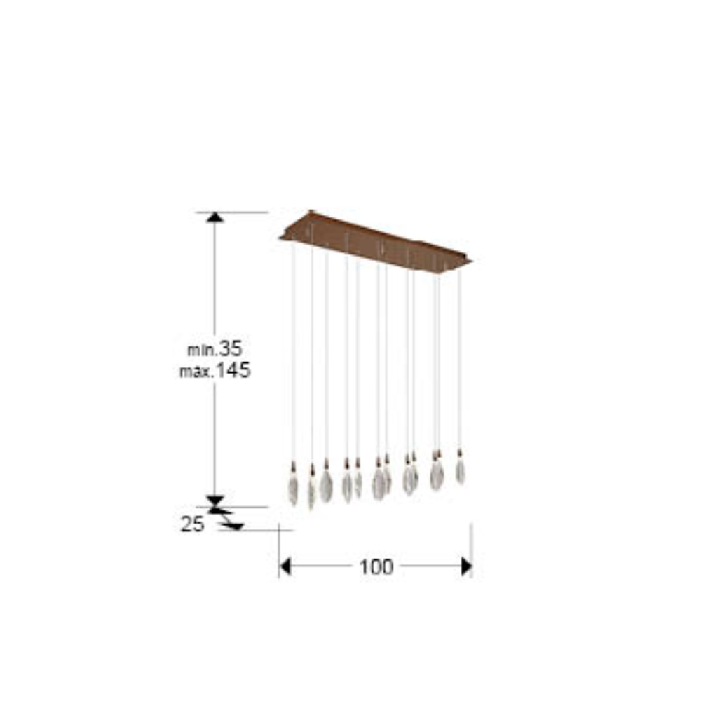 La lámpara de techo colgante Schuller Lágrimas 12 L es una luminaria de diseño espectacular y elegante que combina funcionalidad lumínica con una estética de alta decoración, ideal para transformar espacios interiores amplios como salones, comedores, zonas de estar o entradas de gran impacto. Esta pieza destaca por su estructura rectangular elaborada en metal y acero con acabado oro rosa, que aporta un toque de sofisticación y calidez visual, fusionando lujo moderno con un estilo refinado. La colgante Lágrimas 12 L integra 12 puntos de luz LED de alto rendimiento que emiten un flujo luminoso de aproximadamente 2 400 lúmenes gracias a sus 24 W de potencia LED integrada y regulable, lo que garantiza una iluminación potente y confortable sin necesidad de bombillas adicionales. La temperatura de color es CCT regulable entre 2700 K y 6000 K, permitiéndote adaptar la tonalidad de la luz desde cálida hasta más neutra según el ambiente que desees crear. Una de las señas de identidad de esta lámpara son sus “lágrimas” de cristal tallado con bordes craquelados, que cuelgan delicadamente de la estructura principal y refractan la luz creando un efecto visual único, con destellos de brillo que aportan profundidad, movimiento y una sensación de lujo en el ambiente. Estos detalles convierten a Lágrimas en una pieza no solo funcional, sino también decorativa de alto impacto. La lámpara es regulable en altura, permitiendo ajustarla desde aproximadamente 35 cm hasta 145 cm, lo que facilita adaptarla a techos de diferentes alturas y necesidades decorativas. Incluye mando a distancia por radiofrecuencia para controlar cómodamente la intensidad de la luz y la temperatura de color (CCT) desde el punto de instalación o incluso mediante aplicaciones compatibles como TUYA Smart App para control desde el móvil o tablet. Con unas dimensiones de 100 cm de largo x 20 cm de ancho x altura adaptable 35–145 cm y un peso de 8,8 kg, esta lámpara destaca tanto por su presencia visual como por su practicidad. La calidad de los materiales y el acabado premium en oro rosa la convierten en una opción ideal para quienes buscan iluminación decorativa de diseño, luz regulable y un elemento escultórico que eleve la estética de cualquier estancia interior.