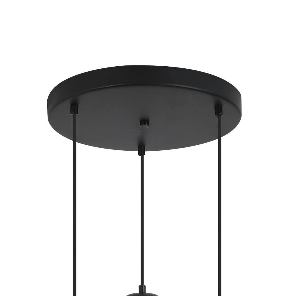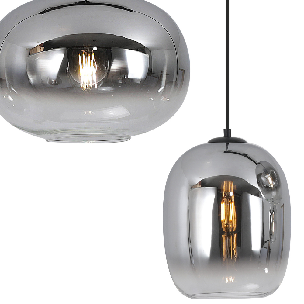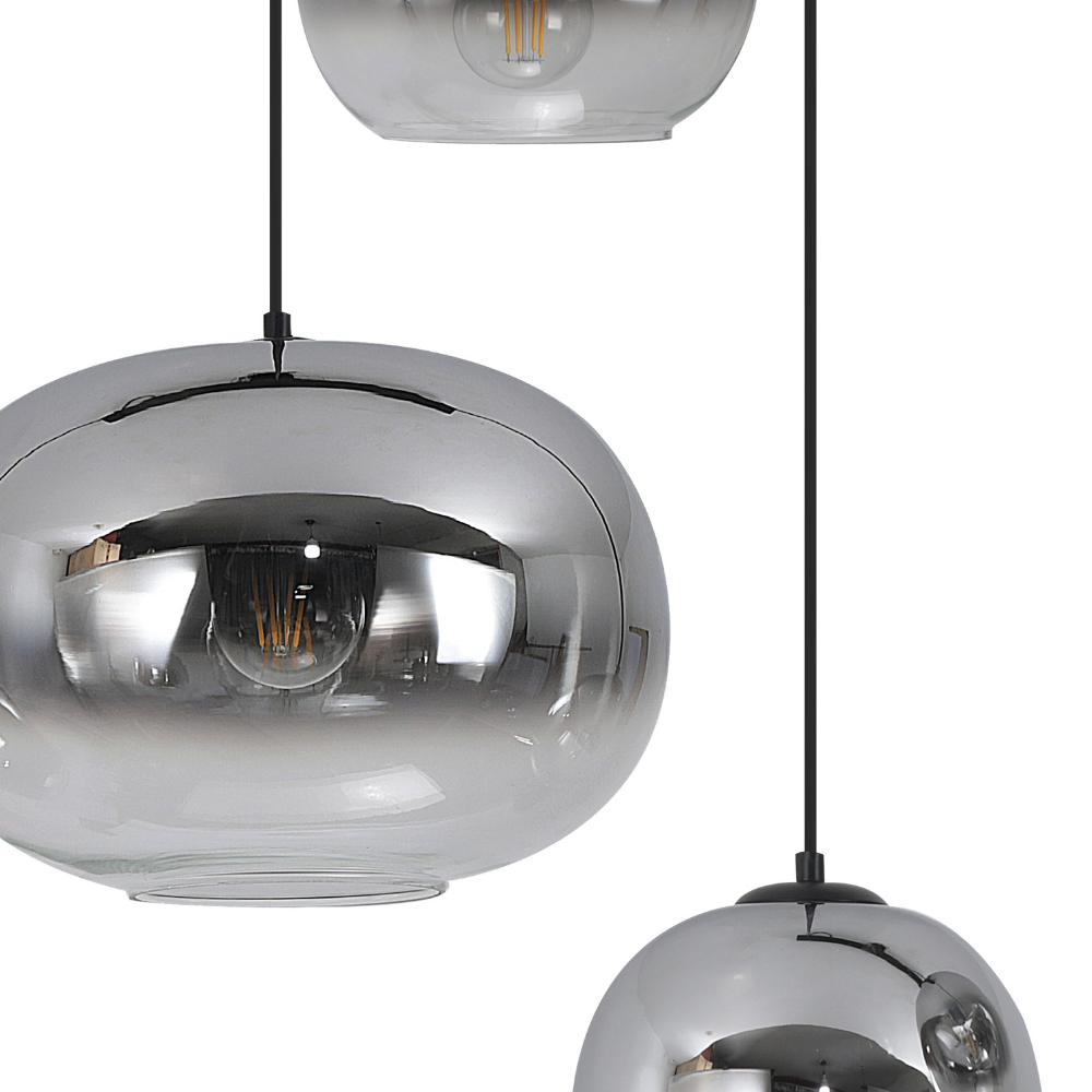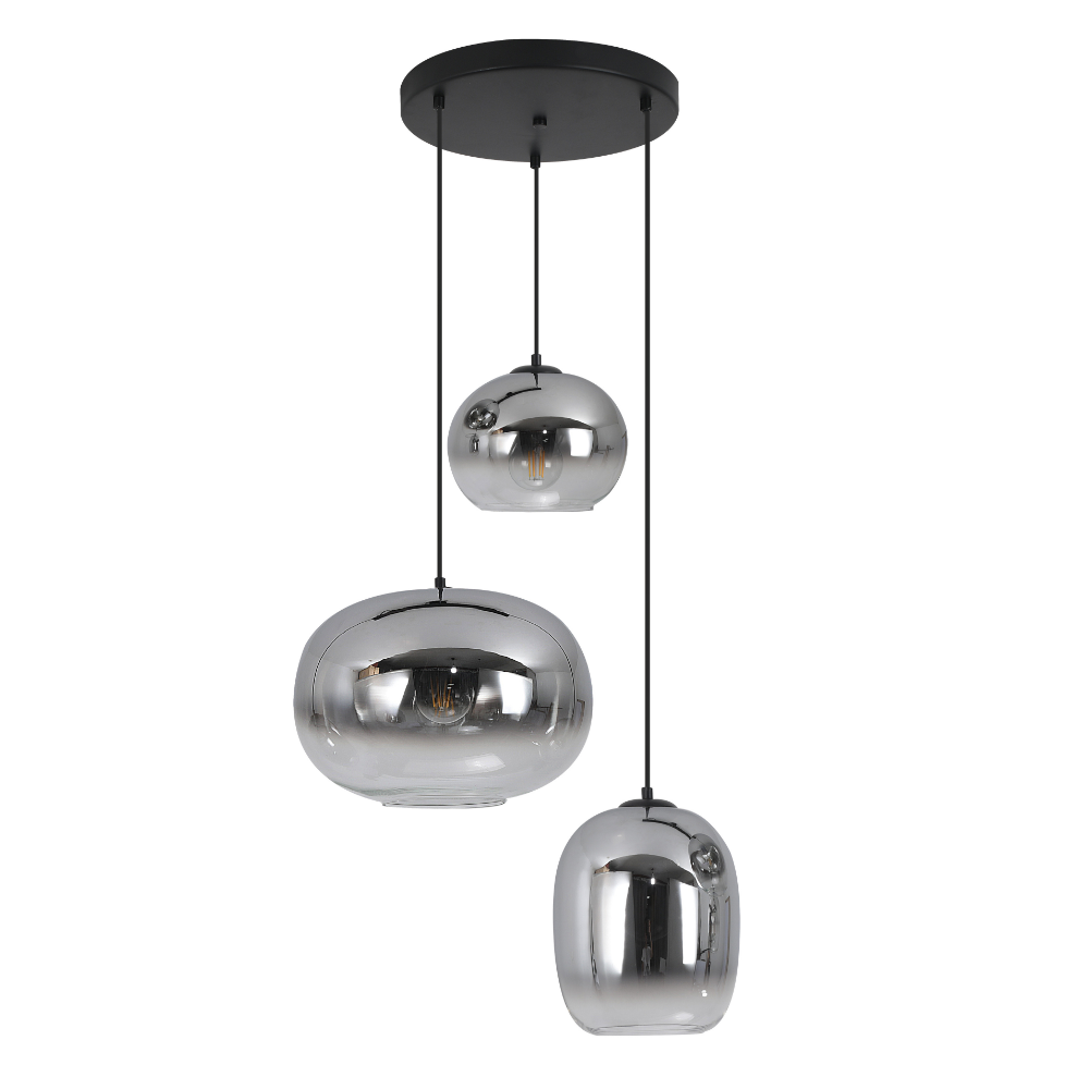 La lámpara de techo colgante LAXE 3 luces es una pieza de iluminación moderna que destaca por su diseño elegante y su marcado carácter decorativo. Su estructura en metal acabado negro se combina con tulipas de vidrio ahumado efecto espejo, creando un conjunto sofisticado que aporta estilo y personalidad a cualquier espacio. Su composición de tres puntos de luz suspendidos a diferentes alturas genera un efecto visual dinámico, ideal para aportar profundidad y protagonismo en salones, comedores o espacios abiertos. Las tulipas de vidrio ahumado suavizan la luz y crean una atmósfera cálida y acogedora, dejando entrever la bombilla para un efecto decorativo muy actual. Funciona con 3 bombillas E27 (no incluidas), lo que permite elegir la intensidad y temperatura de luz deseada, adaptándose a diferentes necesidades y estilos de iluminación. Se recomienda el uso de bombillas tipo filamento para potenciar su estética moderna e industrial. Con un diámetro de 50 cm, esta lámpara es perfecta como punto central sobre mesas o zonas de reunión, combinando funcionalidad y diseño en una sola pieza. Una luminaria que une versatilidad, diseño contemporáneo y alto valor decorativo, ideal para interiores modernos. Altura regulable a la hora de la instalacion.