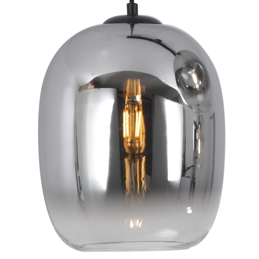 La lámpara de techo colgante LAXE II es una pieza de iluminación decorativa que combina elegancia contemporánea y sofisticación en cada detalle. Su diseño minimalista, compuesto por una estructura en metal acabado negro y una tulipa de cristal con efecto espejo, convierte esta luminaria en un elemento protagonista dentro de cualquier estancia moderna. La tulipa de vidrio ahumado efecto espejo crea un atractivo juego visual al reflejar el entorno cuando está apagada y revelar sutilmente la fuente de luz cuando se enciende, generando una atmósfera cálida, envolvente y muy acogedora. Este efecto la hace ideal para espacios donde se busca una iluminación ambiental con un alto componente decorativo. Equipada con 1 portalámparas E27 (bombilla no incluida), ofrece versatilidad para elegir la intensidad y temperatura de luz más adecuada. Se recomienda el uso de bombillas de filamento LED para potenciar su estética moderna y resaltar el efecto visual del vidrio. Con un diámetro de 20 cm, su tamaño compacto la hace perfecta tanto para instalar de forma individual como en composiciones múltiples, siendo ideal para iluminar mesas auxiliares, barras de cocina o rincones decorativos. Una lámpara que destaca por su diseño actual, versatilidad y alto valor estético, perfecta para interiores modernos, industriales o contemporáneos. Regulable en altura a la hora de la instalación. Disponible en otros formatos.