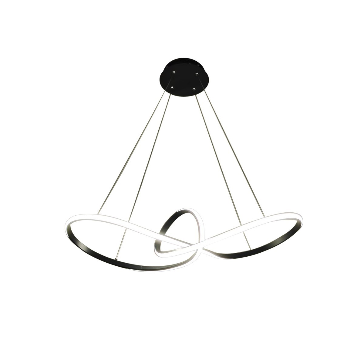 La lámpara de techo colgante Lidias LED negro de CristalRecord es una luminaria de techo de diseño moderno pensada para iluminar con potencia y estilo estancias amplias como salón, comedor o zonas de trabajo. Su estructura de acero en acabado negro y el difusor de silicona opal aportan una estética contemporánea y una luz más homogénea y confortable, reduciendo deslumbramientos. Integra LED de 60W con un flujo luminoso de 5.000 lúmenes, ofreciendo una iluminación eficaz para el día a día. Además, incorpora tecnología CCT (3CCT) para seleccionar la temperatura de color 2700K / 4000K / 6500K, adaptando el ambiente desde una luz cálida y acogedora hasta una más neutra o fría según la actividad. Es una lámpara dimmable y Smart, regulable tanto desde el mando a distancia incluido como desde aplicación móvil, lo que permite ajustar la intensidad y el tono de luz con comodidad. Su altura puede regularse durante la instalación para adaptarse al espacio y a la composición decorativa. Está diseñada para interior con IP20, IK05 y Clase II, funcionando a 170–265V (50/60Hz). Sus dimensiones son Ø820 mm y 1200 mm de alto. También disponible en acabado blanco.