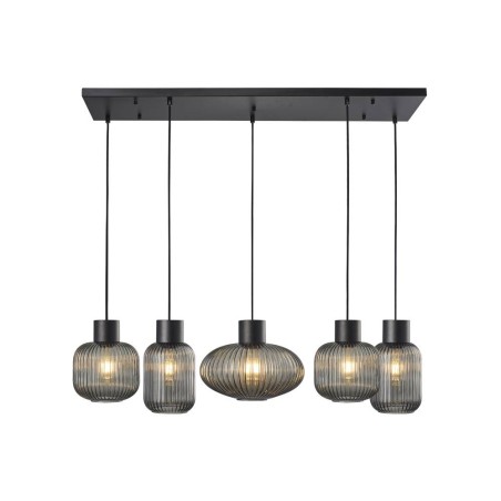 Liria es una lámpara de techo colgante de líneas curvas y elegantes. La estructura está formada por varias pantallas de vidrio en forma de conos invertidos que están dispuestas en diferentes niveles, lo que le da un toque dinámico y llamativo. Las pantallas son de un vidrio traslúcido y opaco en un color gris ahumado, lo que proporciona una luz suave y cálida. Su estructura es de metal negro mate, lo que resalta el contraste con el vidrio y agrega un toque industrial que hace que la lámpara se vea moderna y sofisticada al mismo tiempo. Sus tulipas están realizadas en cristal transparente y cristal ahumado efecto brillo. Lleva integrado LED de 18w consumo lo que la hace eficiente en términos de energía, y genera una luz cálida 3000k que es ideal para ambientes acogedores. Puedes ajustar la altura de cada tulipa a la hora de la instalación. La lámpara de techo Liria es perfecta para colgar sobre una mesa de comedor, cocina … ya que su diseño es elegante y proporcionará una luz agradable durante las cenas. Además, el estilo moderno de la lámpara es ideal para comedores minimalistas o de estilo industrial. En un dormitorio moderno, puede servir como una lámpara decorativa que, además de iluminar, aporta un toque de estilo y elegancia. Disponible en otros formatos.