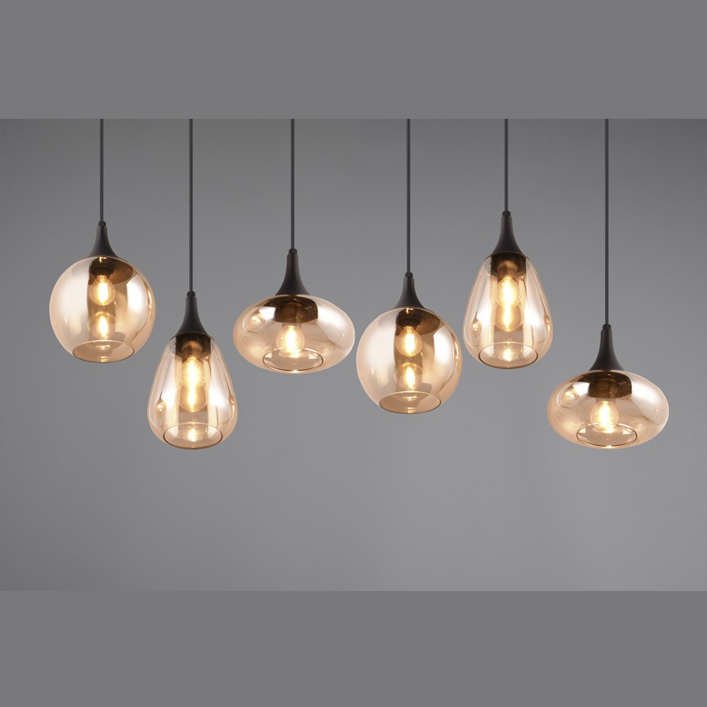 Lámpara de techo colgante Lumina 6XE14 acabado negro tulipas cristal estilo moderno