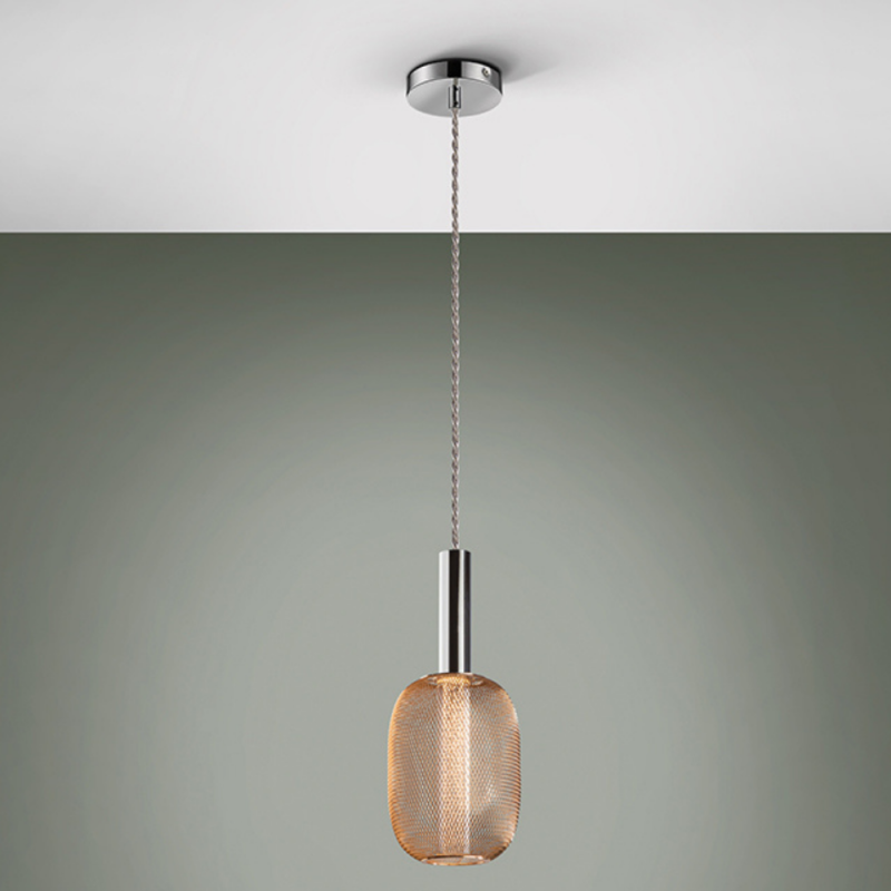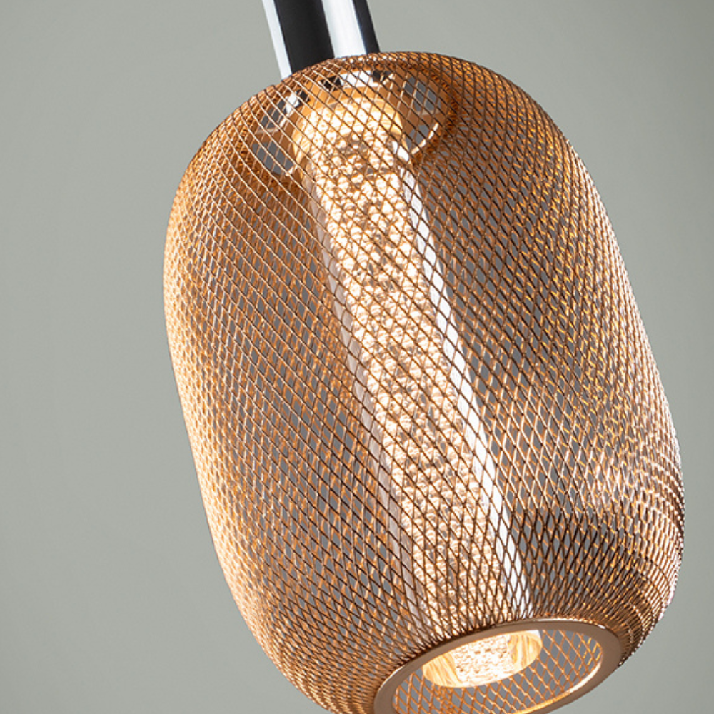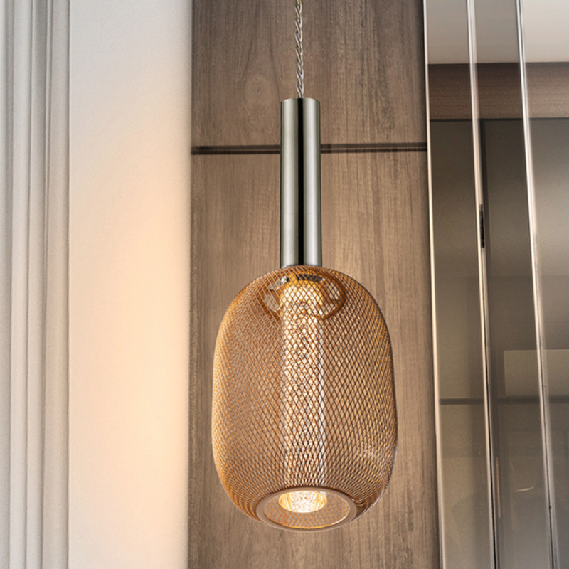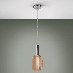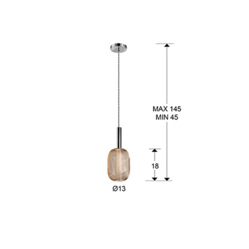 La lámpara colgante de techo Micrón de Schuller es una pieza muy decorativa de estilo contemporáneo, perfecta para dar un toque sofisticado en salones, recibidores, barras o mesitas. Está realizada en metal cromado y destaca por su doble tulipa: un cilindro interior de acrílico transparente con burbujas y un óvalo exterior de malla metálica en oro brillo, creando un efecto visual elegante y un juego de reflejos muy atractivo cuando está encendida. Integra LED de 5W con 450 lm y 3000K (luz cálida), ideal para generar un ambiente acogedor como iluminación auxiliar o decorativa. Además, es regulable (dimmable), por lo que puedes ajustar la intensidad para adaptarla al momento (no incluido). Su instalación permite regular la altura para adaptarse a distintos techos y composiciones, con una altura instalada de 45 cm hasta 140 cm máx.. La pantalla/tulipa mide 13 × 18 cm y la lámpara completa 13 × 30 cm, con un peso aproximado de 0,7 kg. Disponible en diferentes formatos.