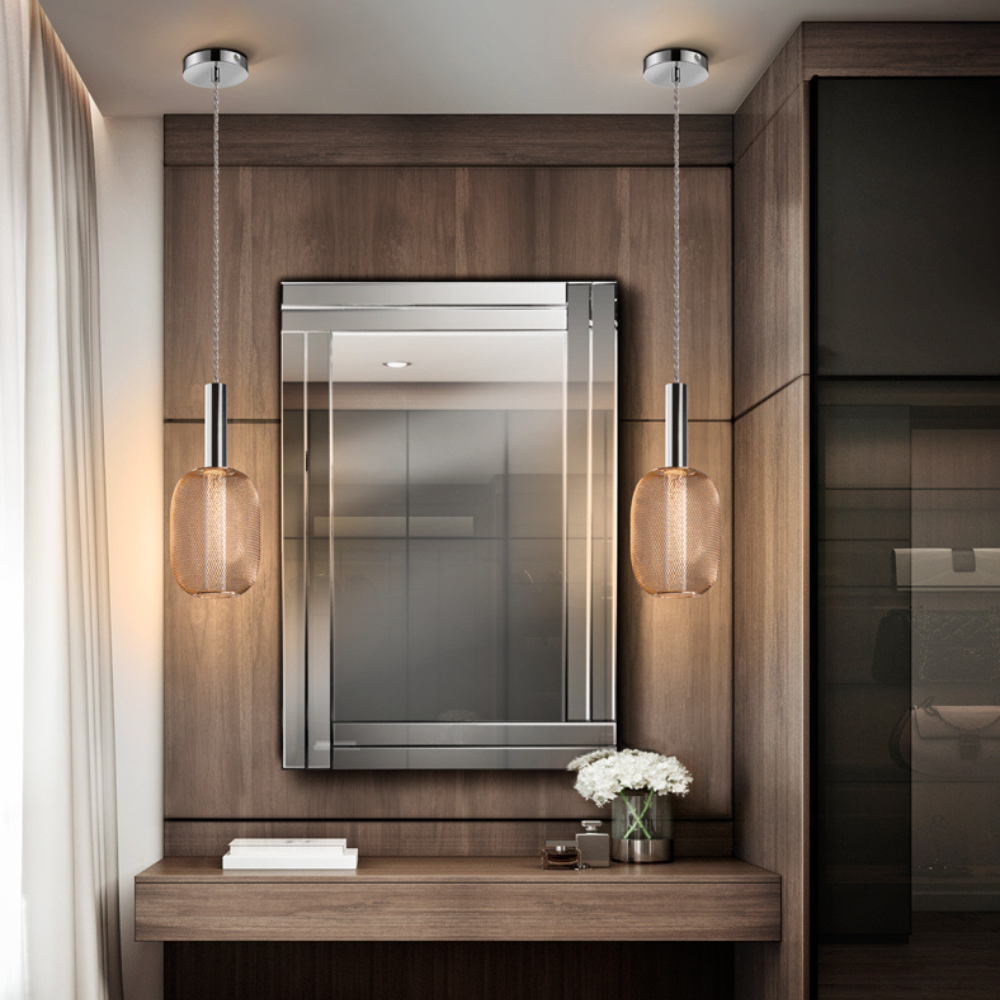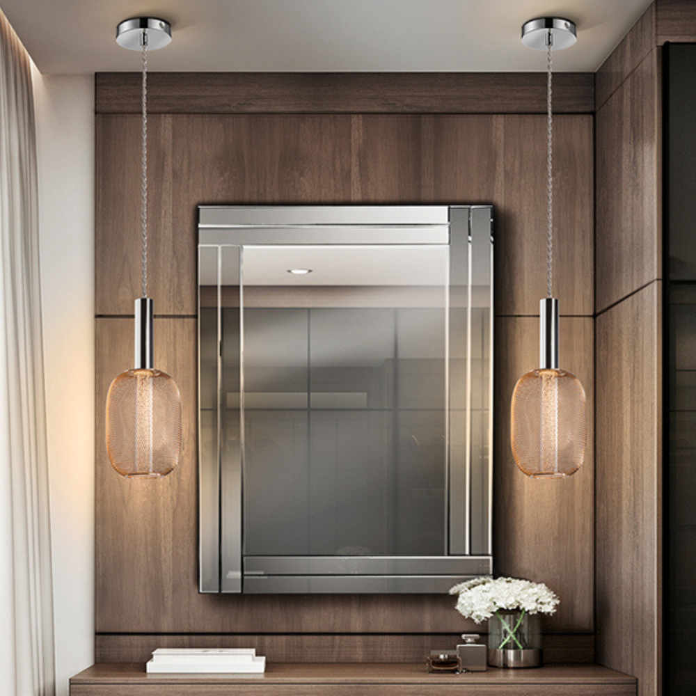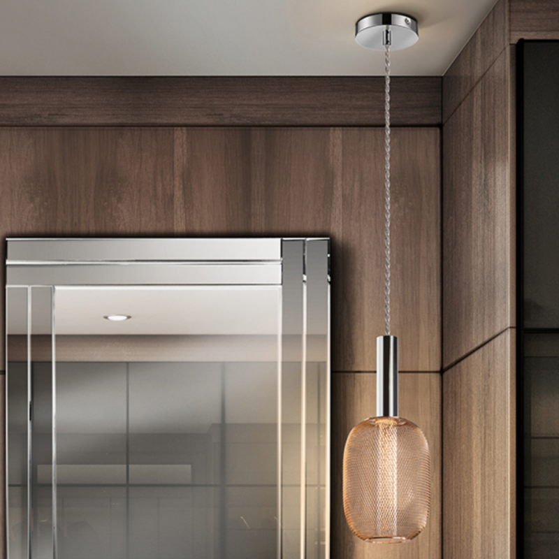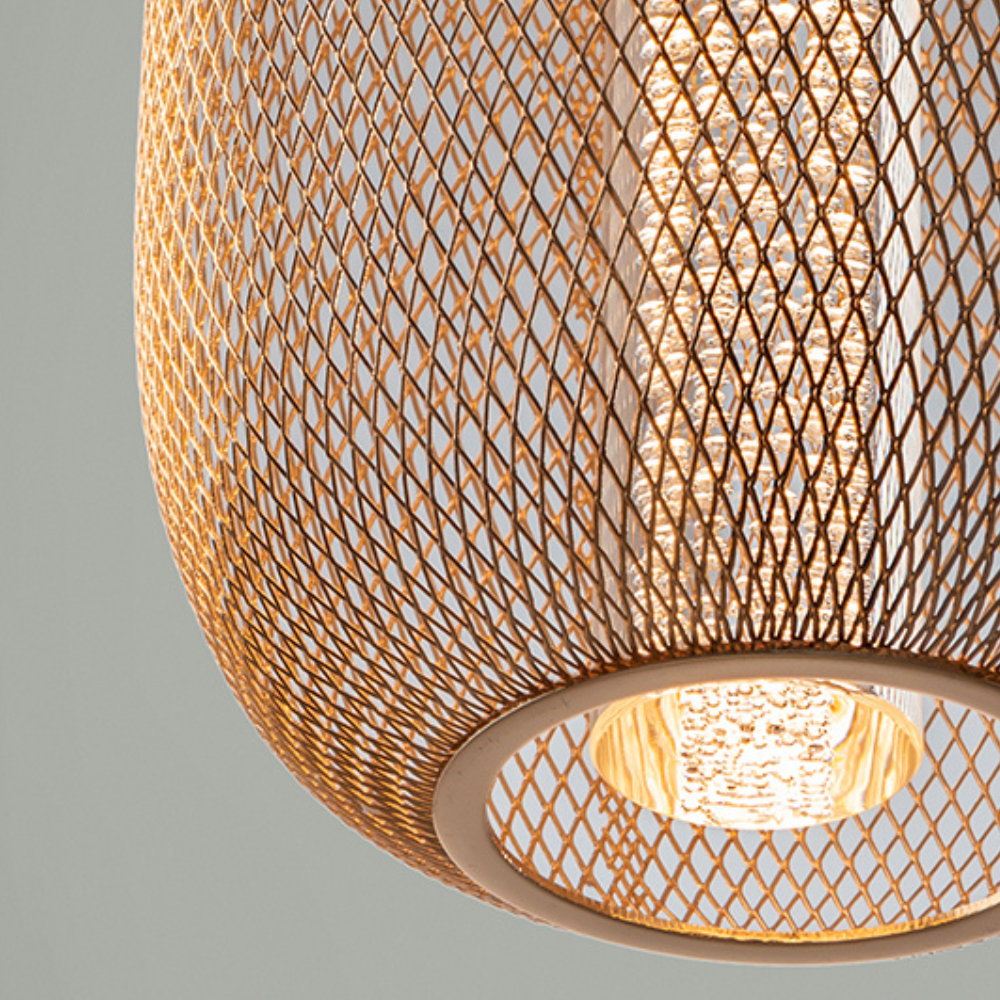 La lámpara colgante de techo Micrón de Schuller es una pieza muy decorativa de estilo contemporáneo, perfecta para dar un toque sofisticado en salones, recibidores, barras o mesitas. Está realizada en metal cromado y destaca por su doble tulipa: un cilindro interior de acrílico transparente con burbujas y un óvalo exterior de malla metálica en oro brillo, creando un efecto visual elegante y un juego de reflejos muy atractivo cuando está encendida. Integra LED de 5W con 450 lm y 3000K (luz cálida), ideal para generar un ambiente acogedor como iluminación auxiliar o decorativa. Además, es regulable (dimmable), por lo que puedes ajustar la intensidad para adaptarla al momento (no incluido). Su instalación permite regular la altura para adaptarse a distintos techos y composiciones, con una altura instalada de 45 cm hasta 140 cm máx.. La pantalla/tulipa mide 13 × 18 cm y la lámpara completa 13 × 30 cm, con un peso aproximado de 0,7 kg. Disponible en diferentes formatos.