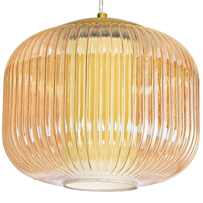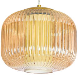 La lámpara de techo colgante Nara de cristal ámbar 1xE27 ofrece un diseño moderno con vidrio acanalado que crea una iluminación cálida y elegante para salones, comedores o cocinas.