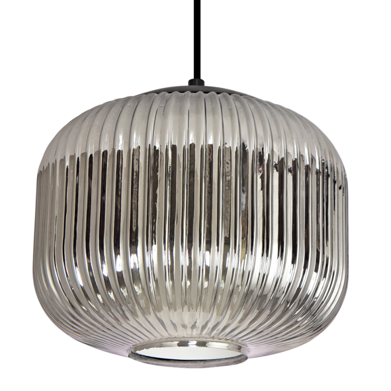 La lámpara colgante de cristal Nara 1xE27 combina diseño moderno y vidrio acanalado para crear una iluminación elegante y decorativa ideal para salones, comedores o cocinas.