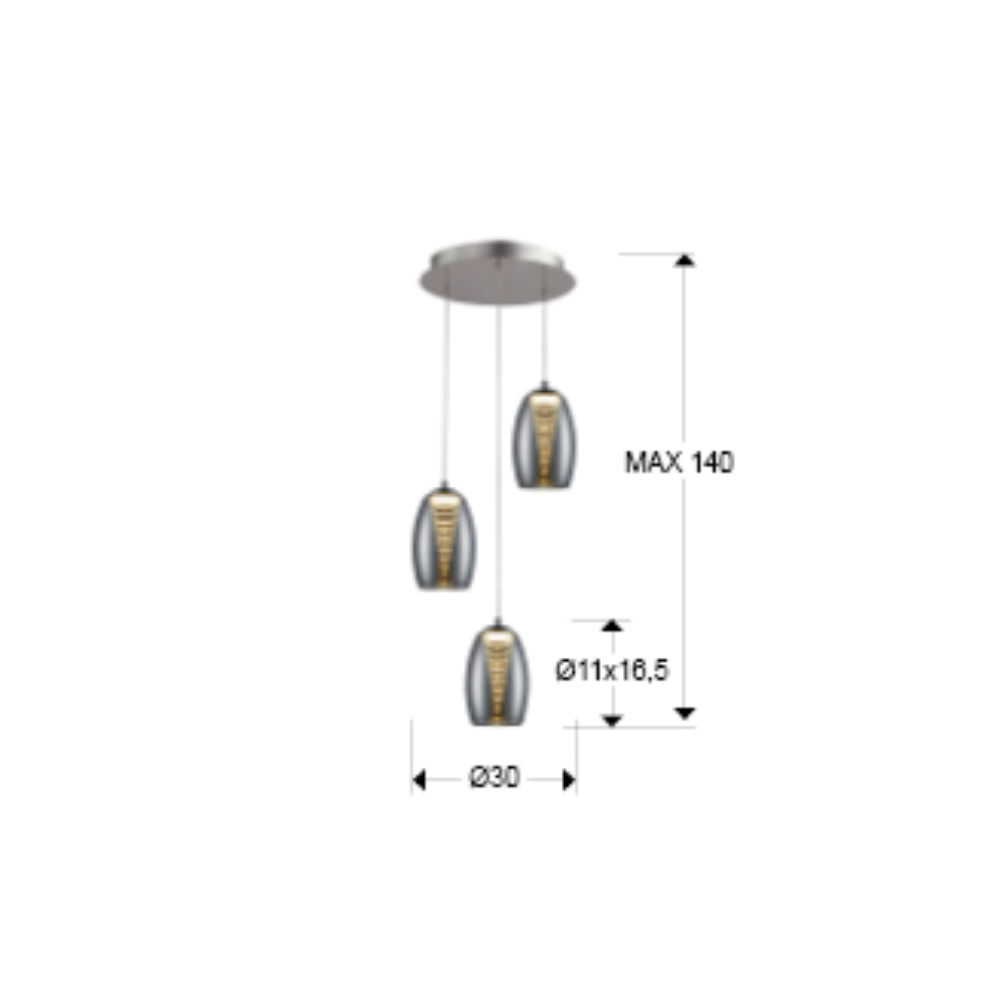 La lámpara de techo Nebula de Schuller es una colgante de estilo moderno pensada para aportar un punto decorativo elegante en salones, comedores o recibidores. Está realizada en metal con acabado cromo y destaca por su juego de volúmenes gracias a la doble tulipa: una exterior de cristal espejado y una interior de policarbonato transparente con forma de cono escalonado, que aporta profundidad y un efecto visual muy sofisticado al encenderla. Integra iluminación LED con 3 puntos de luz (3×5W LED), ofreciendo un flujo total de 1.350 lm y 3000K (luz cálida), ideal para crear un ambiente acogedor con una luz homogénea. Es regulable en altura, a la hora de la instalación, lo que permite adaptarla a diferentes techos y composiciones decorativas: altura instalada de 35 cm hasta 150 cm máx. Sus dimensiones generales son 32 × 85 cm, con tulipas de 11,5 × 16,5 cm, y cable transparente para una estética más ligera. Además, incluye tacos de vuelco con balancín para mejorar la fijación al techo. Disponible en otros formatos.