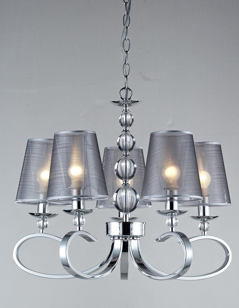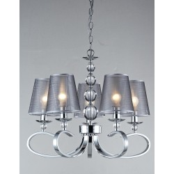 Lámpara de techo colgante Nice 5 luces 5xE14 acabado metal cromo pantallas tejido plata estilo clásico 60cm Ø