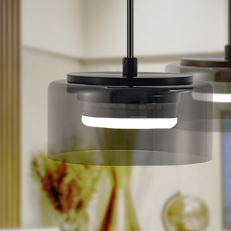 Lámpara colgante Schuller Nimes con acabado metal negro mate y tulipa gris claro. Compatible con bombillas GU10 (no incluidas) y altura regulable. Diseño moderno e industrial ideal para comedor, cocina o salón.