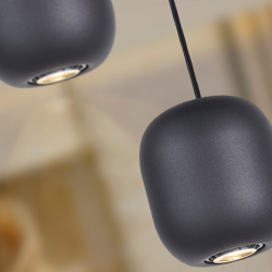 Lámpara colgante Schuller Nimes en metal negro mate con portalámparas GU10. Iluminación focal regulable en altura (30–160 cm). Ideal para comedores, cocinas y salones modernos.
