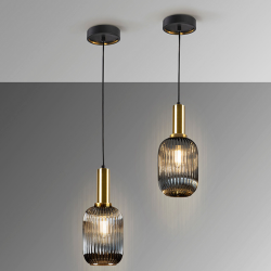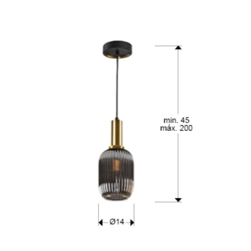 La lámpara colgante Norma de Schuller es una pieza elegante y contemporánea, ideal para crear un punto de luz con carácter en salones, comedores, barras o mesitas. Está fabricada en metal acabado negro mate con detalles en latón satinado, y se completa con una tulipa de cristal moldeado en acabado gris smoke espejado, que aporta profundidad visual y un brillo sutil cuando la lámpara está encendida. Incorpora 1 luz con casquillo E27 e incluye bombilla LED E27 de 8W. Además, es regulable (dimmable), permitiendo ajustar la intensidad para adaptar el ambiente: desde una iluminación suave y decorativa hasta una luz más funcional según el momento (regulador no incluido). Ofrece 870 lm y CRI 80, con protección IP20 para interior. Su instalación es muy versátil gracias a que es regulable en altura, con una altura instalada de 45 cm hasta 200 cm máx.. Por dimensiones, es perfecta para composiciones individuales o en serie: Ø14 cm y 35 cm de alto (aprox.), con tulipa de 14 × 20 cm y florón de 12 × 2,5 cm. Disponible en diferentes formatos.