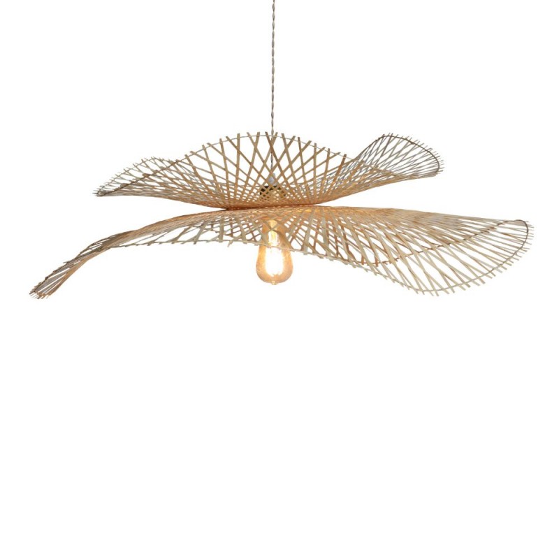 La lámpara de techo colgante Ondas tiene es una pieza versátil y decorativa. Su estructura es de metal y su pantalla ondulada y abierta está realizada en Bambú natural y nos recuerda a una flor o una hoja desplegada. La altura de la lámpara colgante de techo Ondas es regulable a la hora de la instalación. Ondas en compatible con bombillas led (no incluida). Su estilo Boho-Chic y natural nos permiten utilizarla para iluminar estancias como un salón, dormitorio e incluso para uso comercial en restaurantes o comercios.