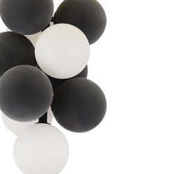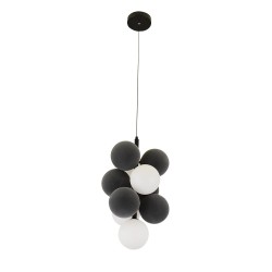 La serie Pilsen es la elección ideal para quienes buscan un estilo distinto y audaz en su iluminación. Esta lámpara colgante única está confeccionada en metal con un elegante acabado negro mate, y su cableado negro permite ajustar la altura durante la instalación, lo que te brinda flexibilidad en su disposición. Las tulipas en forma de esferas son el rasgo característico de Pilsen y están fabricadas en material acrílico forrado con terciopelo negro y terciopelo blanco, proporcionando una experiencia táctil y visual única. Pilsen es completamente compatible con bombillas LED (no incluidas), lo que te permite disfrutar de una iluminación eficiente y con un bajo consumo de energía. Además, la serie Pilsen también está disponible en otro formato de lámpara colgante, lo que amplía las opciones para personalizar tu iluminación. Puedes utilizar Pilsen para iluminar una mesa de comedor, creando un ambiente llamativo y distintivo que se convertirá en el centro de atención. También es una excelente opción para la iluminación en un dormitorio, añadiendo un toque de estilo y originalidad a tu espacio personal. Con la serie Pilsen, puedes añadir un toque de diferencia y audacia a tu decoración, creando un ambiente que se destaque por su estilo único.