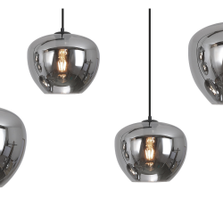 La lámpara de techo colgante Ribadeo Lineal es una pieza de iluminación decorativa que destaca por su diseño moderno y su elegante composición en línea, ideal para aportar estilo y funcionalidad a espacios contemporáneos. Su estructura en metal acabado negro mate se combina con cuatro tulipas de cristal ahumado con efecto espejo, creando un conjunto sofisticado y visualmente impactante. Las tulipas presentan un acabado reflectante que aporta un efecto decorativo único: cuando la lámpara está apagada, el cristal actúa como espejo, mientras que al encenderse deja ver sutilmente la bombilla, generando una iluminación cálida y envolvente. Este juego de transparencias y reflejos convierte a la Ribadeo en una opción perfecta para ambientes que buscan personalidad y elegancia. Dispone de 4 portalámparas E27 (bombillas no incluidas), lo que permite personalizar completamente la intensidad y el tono de la luz. Para potenciar su estética, se recomienda el uso de bombillas LED de filamento, que aportan un toque vintage-industrial y mejoran el efecto visual del conjunto. Gracias a su formato lineal, esta lámpara es especialmente adecuada para su instalación sobre mesas de comedor, islas de cocina o barras, proporcionando una iluminación uniforme y decorativa. La regulación en altura de sus cables permite adaptarla fácilmente a diferentes espacios y necesidades a la hora de la instalación. Una luminaria que combina diseño contemporáneo, versatilidad y carácter decorativo, perfecta para interiores modernos, industriales o urbanos. Disponible en otros formatos y acabado ámbar.