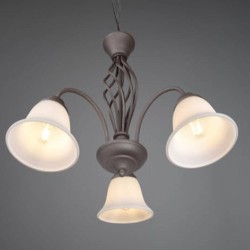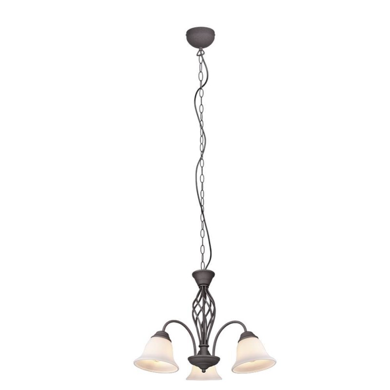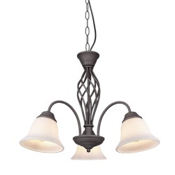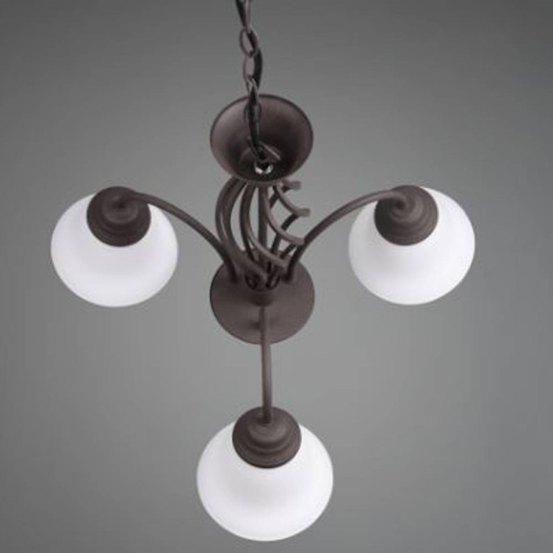 Lámpara colgante de la colección Rústica. Esta colección de lámparas es muy completa y su estilo es rústico. La lámpara colgante 3L Rústica está realizada en metal acabado óxido y sus tulipas son de cristal opal. Compatible con bombillas led (no incluidas). Altura regulable a la hora de la instalación. Tiene un diseño sencillo y se puede utilizar para iluminar dormitorios, salones o recibidores.