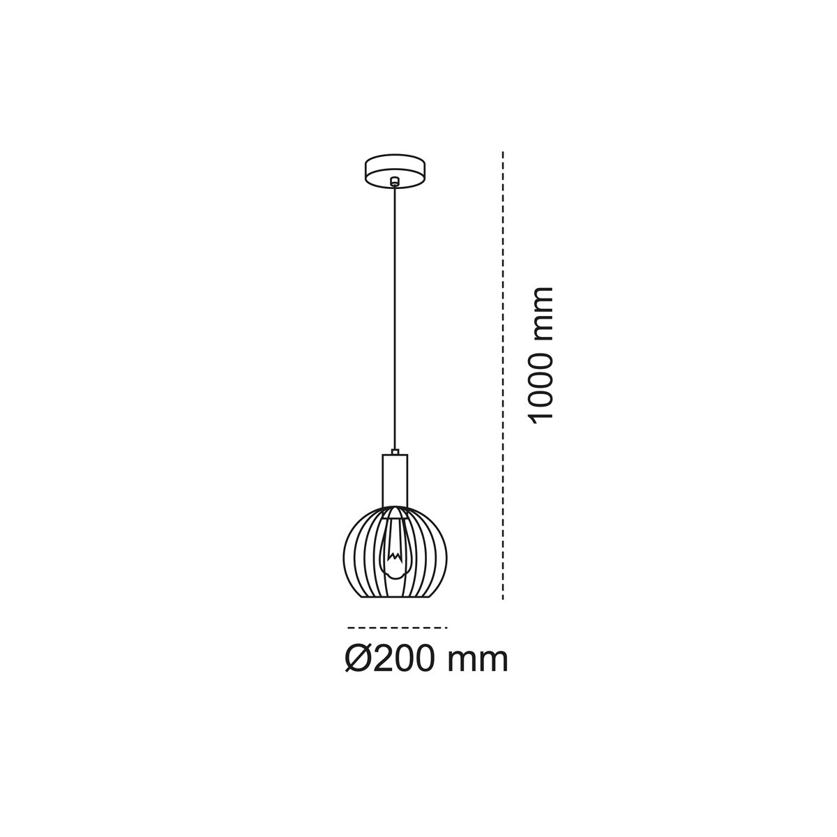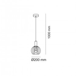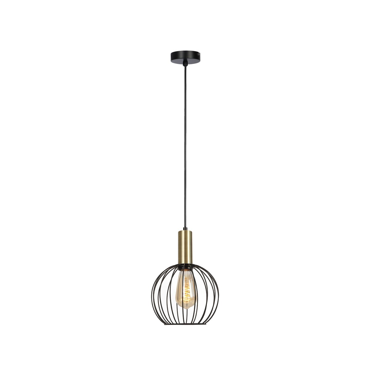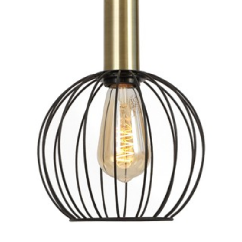 Lámpara colgante Sofis II CristalRecord 1xE27 en acero negro + oro, con pantalla de varillas metálicas y bombilla a la vista. Medidas Ø200 mm y alto 1000 mm. IP20, 230V, Clase I. Bombilla no incluida.
