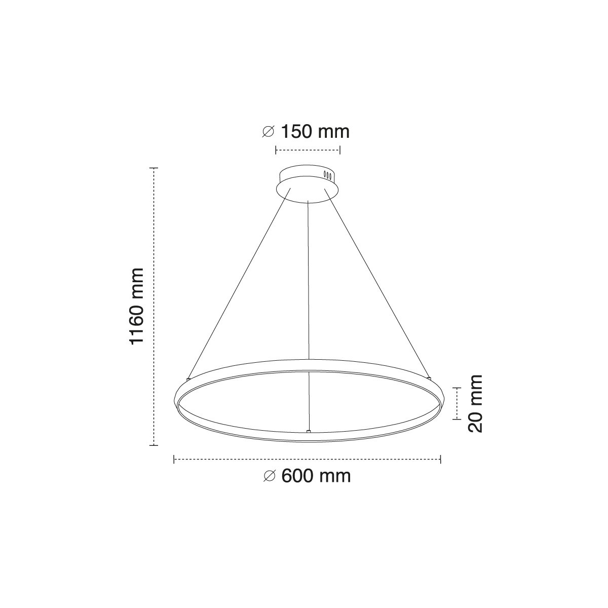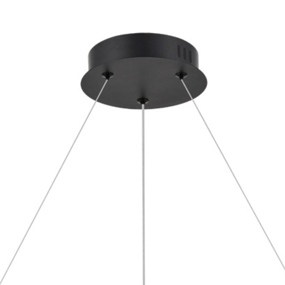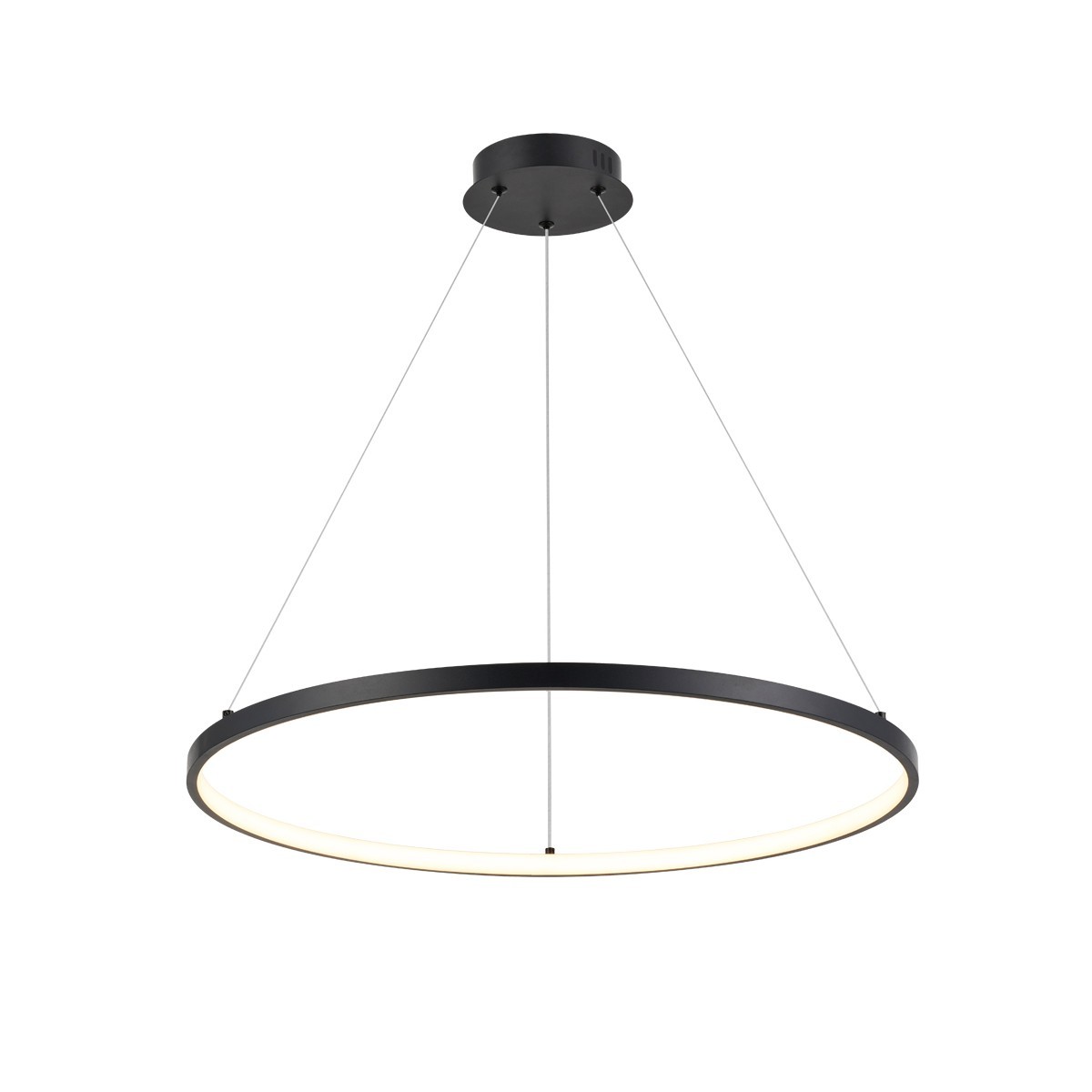 Lámpara de techo colgante TIAMIS LED 52W negra con aro de aluminio Ø60 cm y LED integrado 5200 lm en 3000K (luz cálida). Altura regulable con 3 sirgas. Ideal para salón y comedor. No regulable.