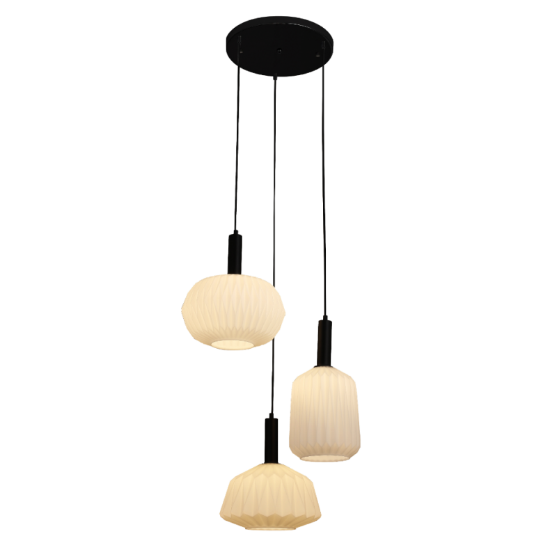 Lámpara de techo colgante Ulea 3L 3xE27 acabado negro tulipa vidrio blanco estilo moderno 50cm Ø