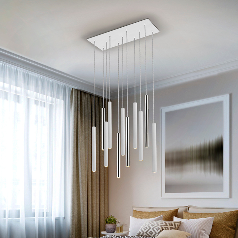 Lámpara de techo colgante Varas 11L LED 55w 3000k acabado blanco / cromo estilo moderno dimable