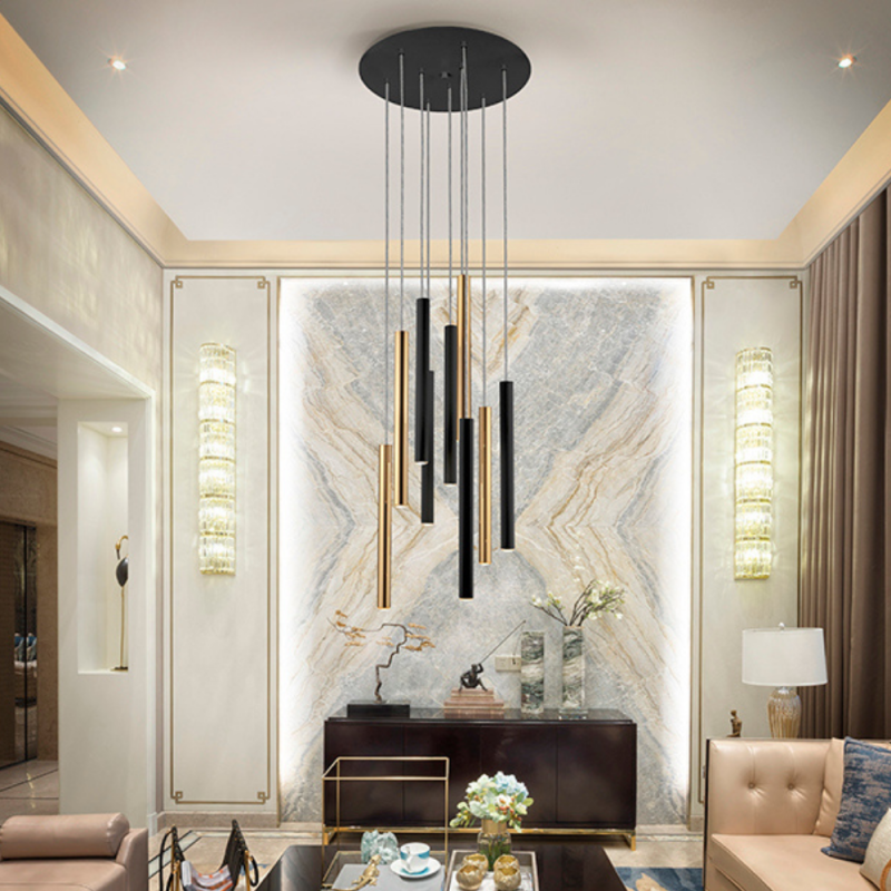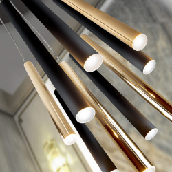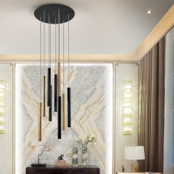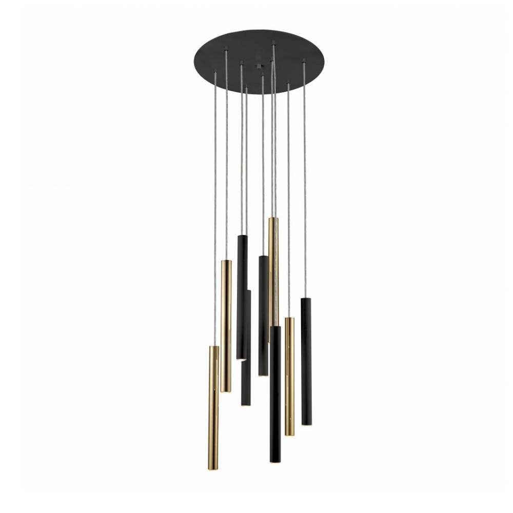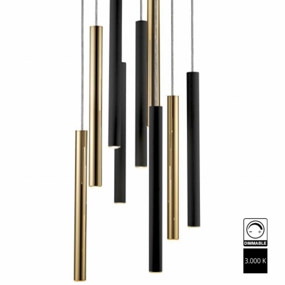 Lámpara colgante VARAS 9L LED 45W 3000K regulable en oro y negro Ø42 cm con mando.