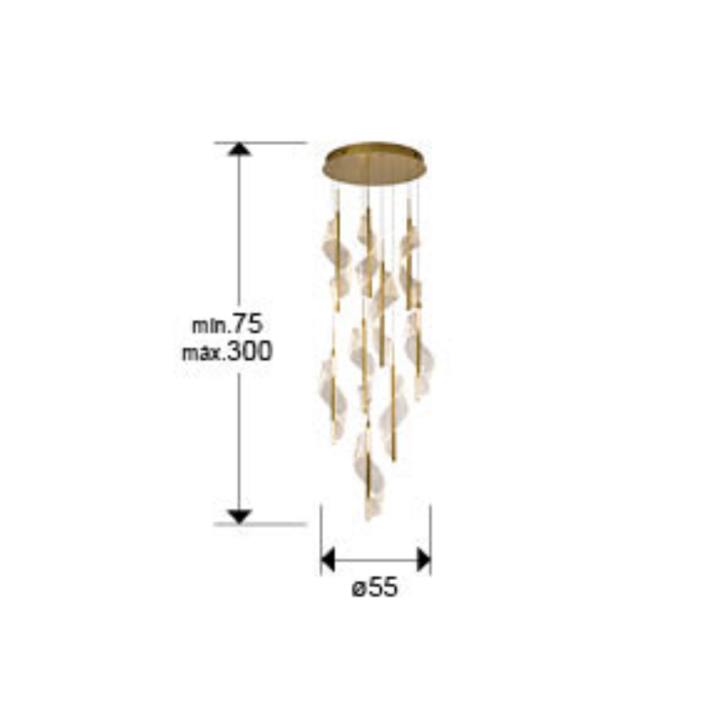 Lámpara de techo colgante Velas 9L LED 78w 3000k dimmable integrado acabado oro estilo moderno incluye mando + APP 55cm
