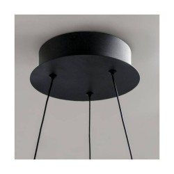 La colección Sand Negro está disponible en diferentes tamaños. Esta original lámpara es de estilo moderno. Su estructura es de metal en acabado negro y pvc blanco. Lleva integrado led 22w consumo (1760lm). Su luz sale emitida de forma indirecta en una agradable tonalidad 3000k (luz cálida). Su altura es regulable a la hora de la instalación. Ideal para utilizar como iluminación en un salón, un dormitorio, un comercio. Disponible en acabado oro.