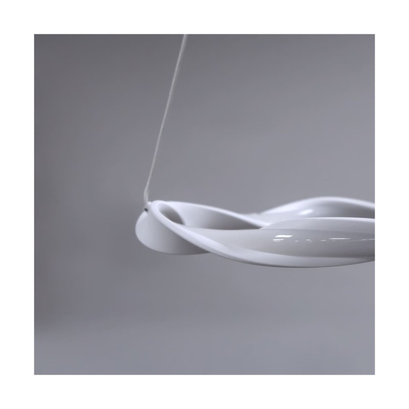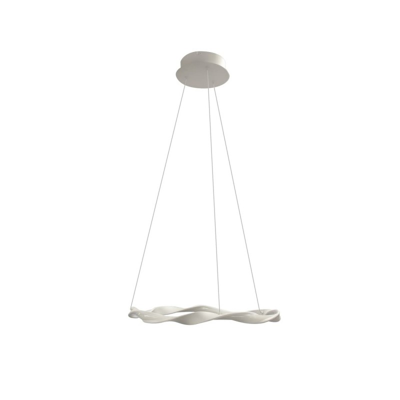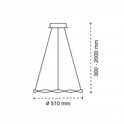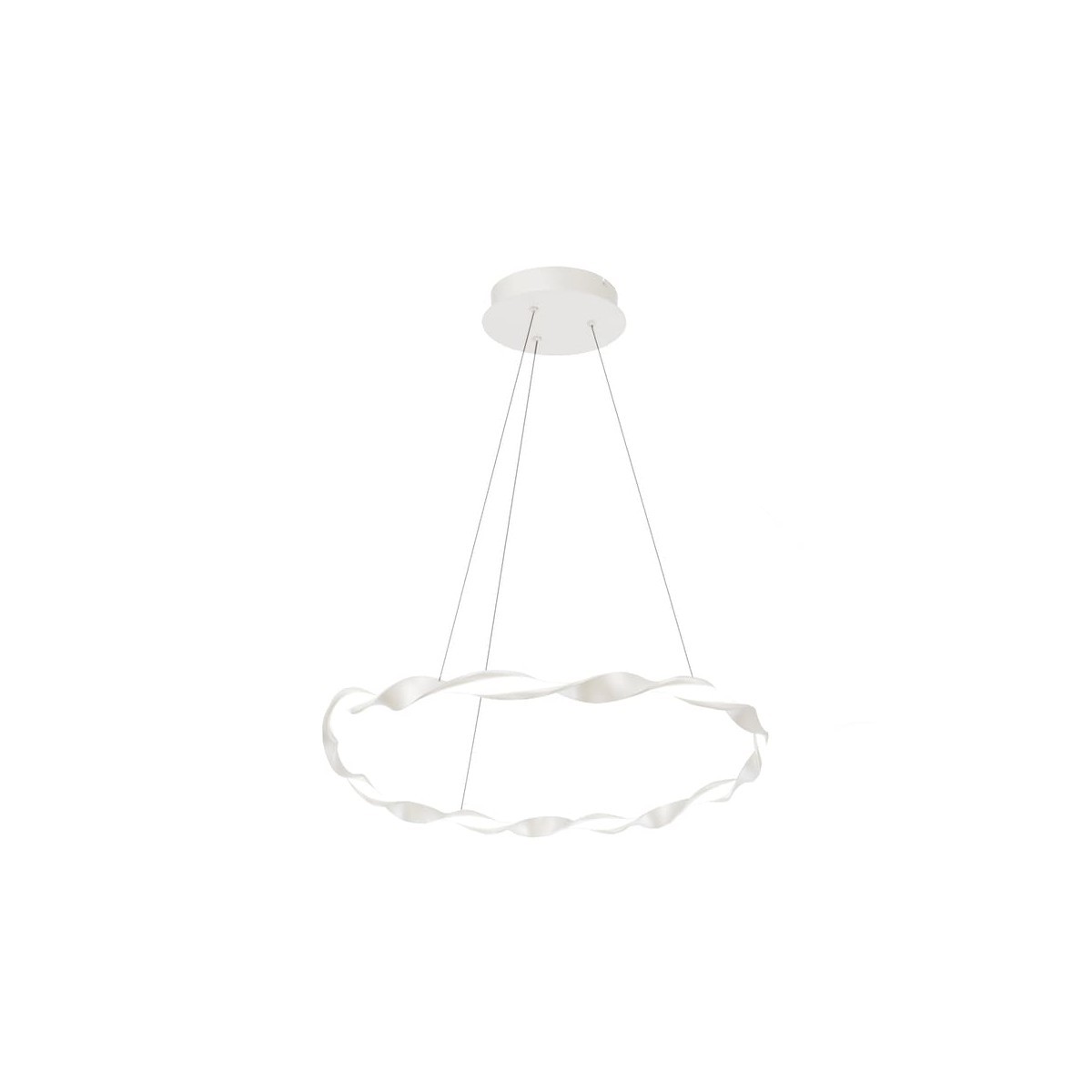 Lámpara de techo colgante LED SAND CristalRecord blanca : diseño redondo Ø510 mm con altura regulable 300–2000 mm. LED 22W, 1760 lm, 3000K (luz cálida), haz 120°, CRI 80. IP20, Clase I, no regulable.