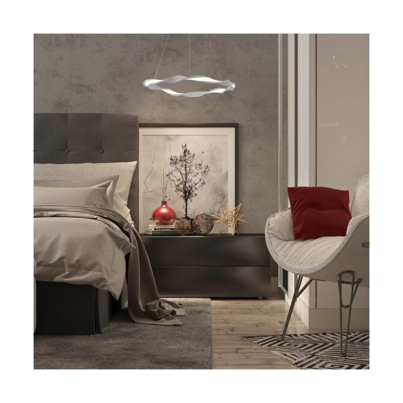 La lámpara de techo colgante Sand LED 22W blanca de CristalRecord es una colgante de diseño contemporáneo, ideal para crear ambientes cálidos y modernos en salón, comedor, dormitorio o zonas de paso. Su estética redonda y minimalista la convierte en una opción muy versátil para interiores actuales, aportando presencia sin recargar visualmente el espacio. Integra LED de 22W con un flujo de 1.760 lúmenes y temperatura de color 3000K (luz cálida), ofreciendo una iluminación agradable para el día a día. Dispone de driver integrado, CRI 80 y un haz de luz de 120°, que favorece una distribución amplia y uniforme. Su vida útil es de 30.000 horas y está diseñada para uso interior (IP20, Clase I). No es regulable en intensidad (dimmable: no), por lo que proporciona una luz estable y constante. En cuanto a instalación, permite una gran adaptabilidad gracias a su altura regulable de 300 a 2000 mm, con un diámetro de Ø510 mm, lo que facilita ajustarla a distintos techos y composiciones (sobre mesa, zona central o espacios amplios).